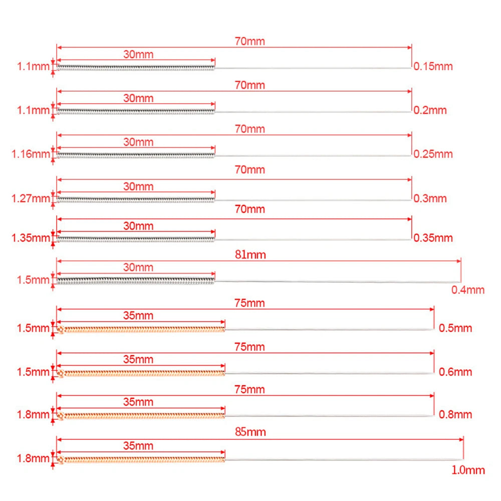 mix size 1: 1PCS*0.25mm,1PCS*0.3mm,4PCS*0.35mm,4PCS*0.4mm