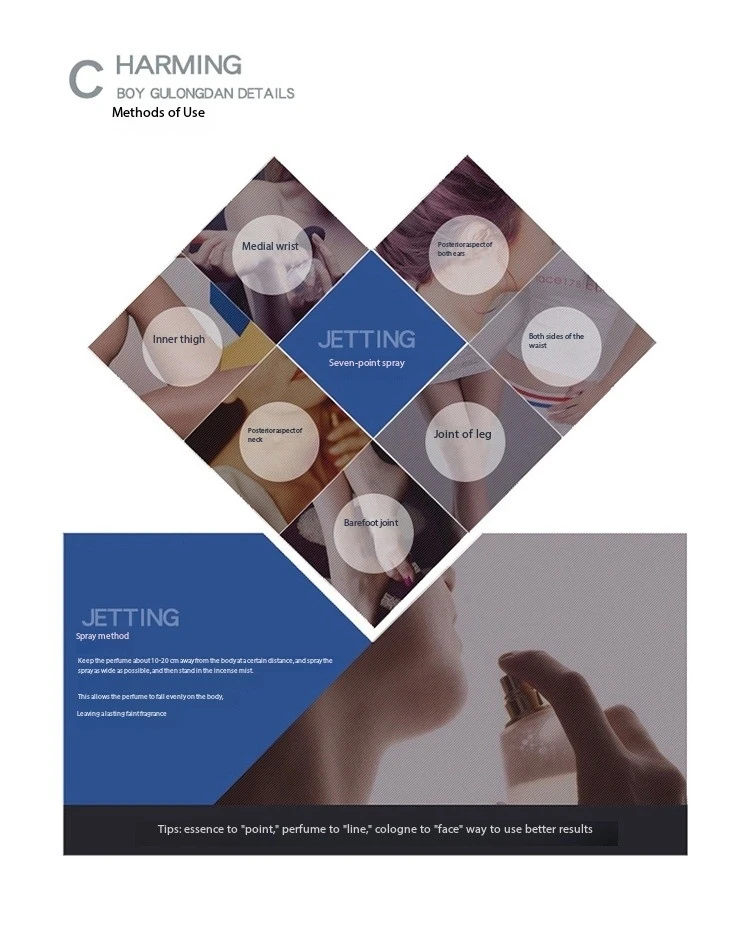 - Before using, please test the perfume on a small area of skin to ensure it does not cause any irritation or allergies.