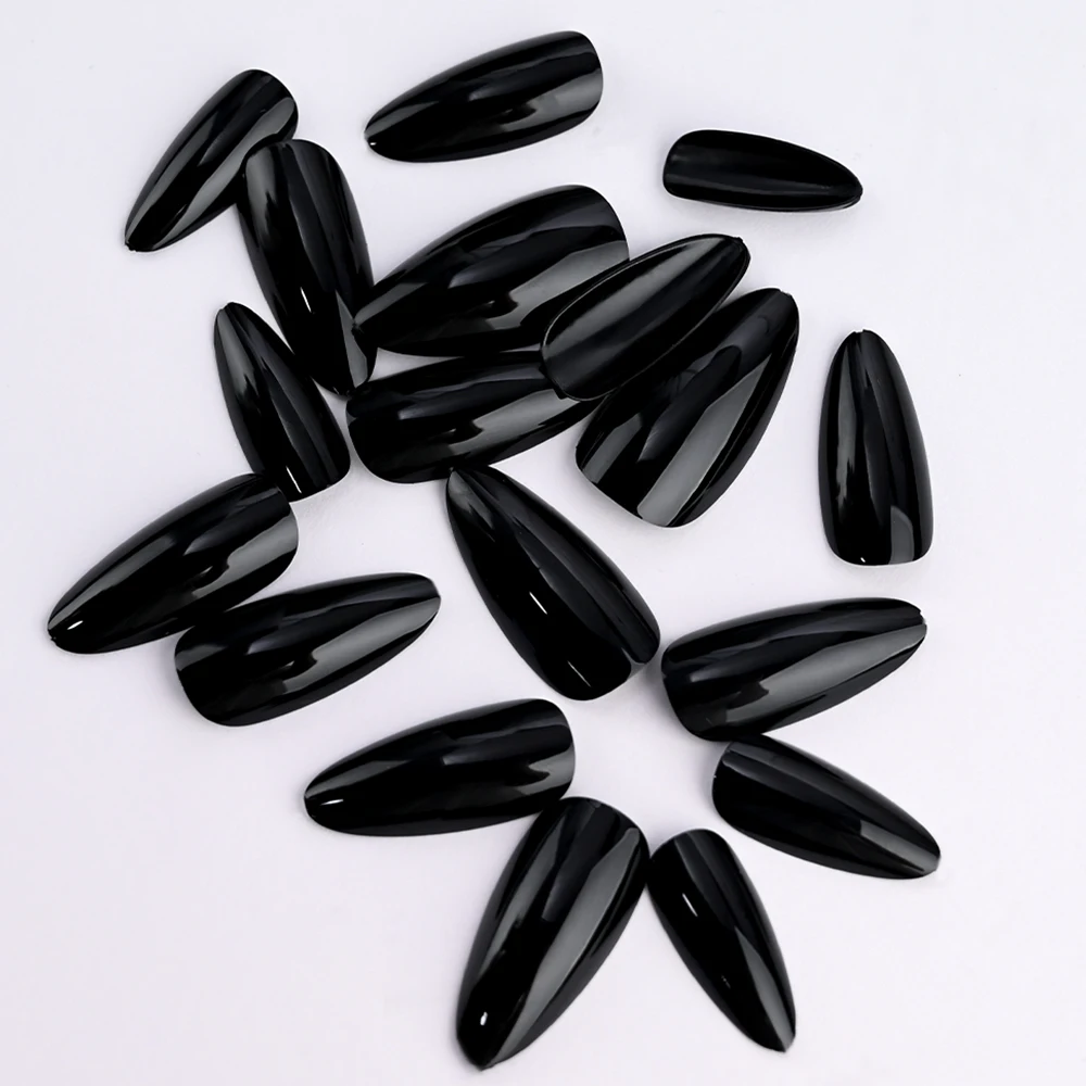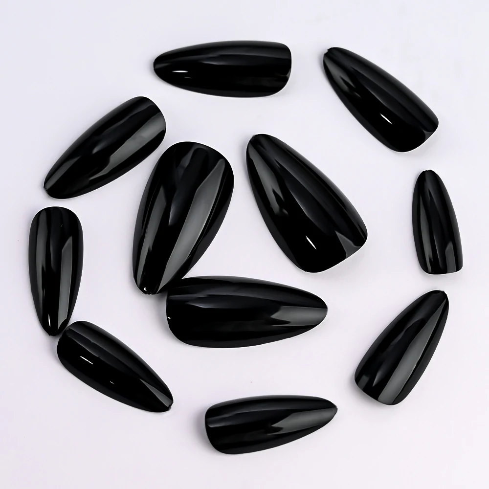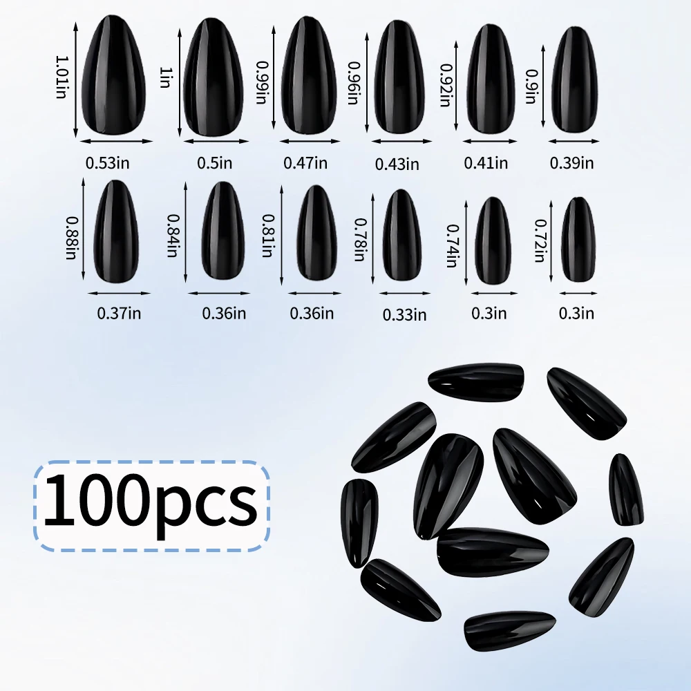 100Pcs Almond Press on Nails Medium Length Fake Nails Black Matte Almond False Nail Tips Artificial Fingernail Extend Fake Nails