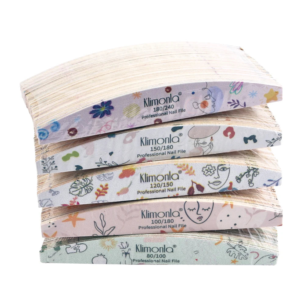 10Pcs/Lot Nail File 100 180 Grit Professional Wooden Two Sided Sanding Files Washable Nails Accessories Manicure Salon Tools