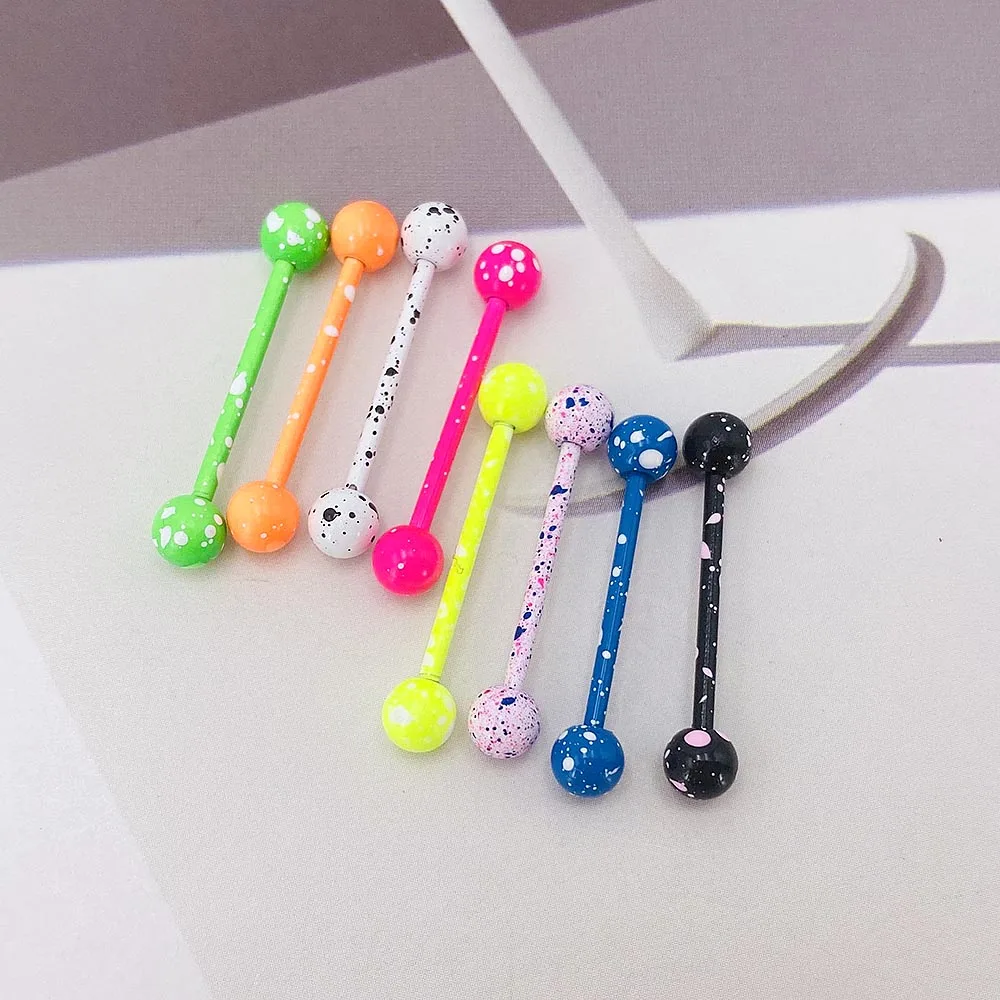 10Pcs/Lot Sexy Mixed Colorful Tongue Rings Surgical Stainless Steel Piercing Tongue Studs For Women Men Body Piercing Jewelry