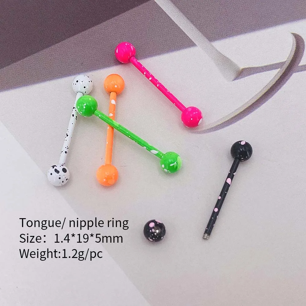 10Pcs/lot Sexy Mixed Colorful Tongue Rings Surgical Stainless Steel Piercing Tongue Studs For Women Men Body Piercing Jewelry