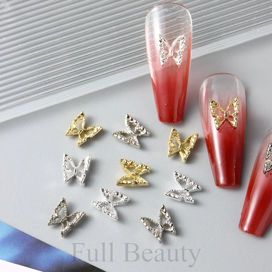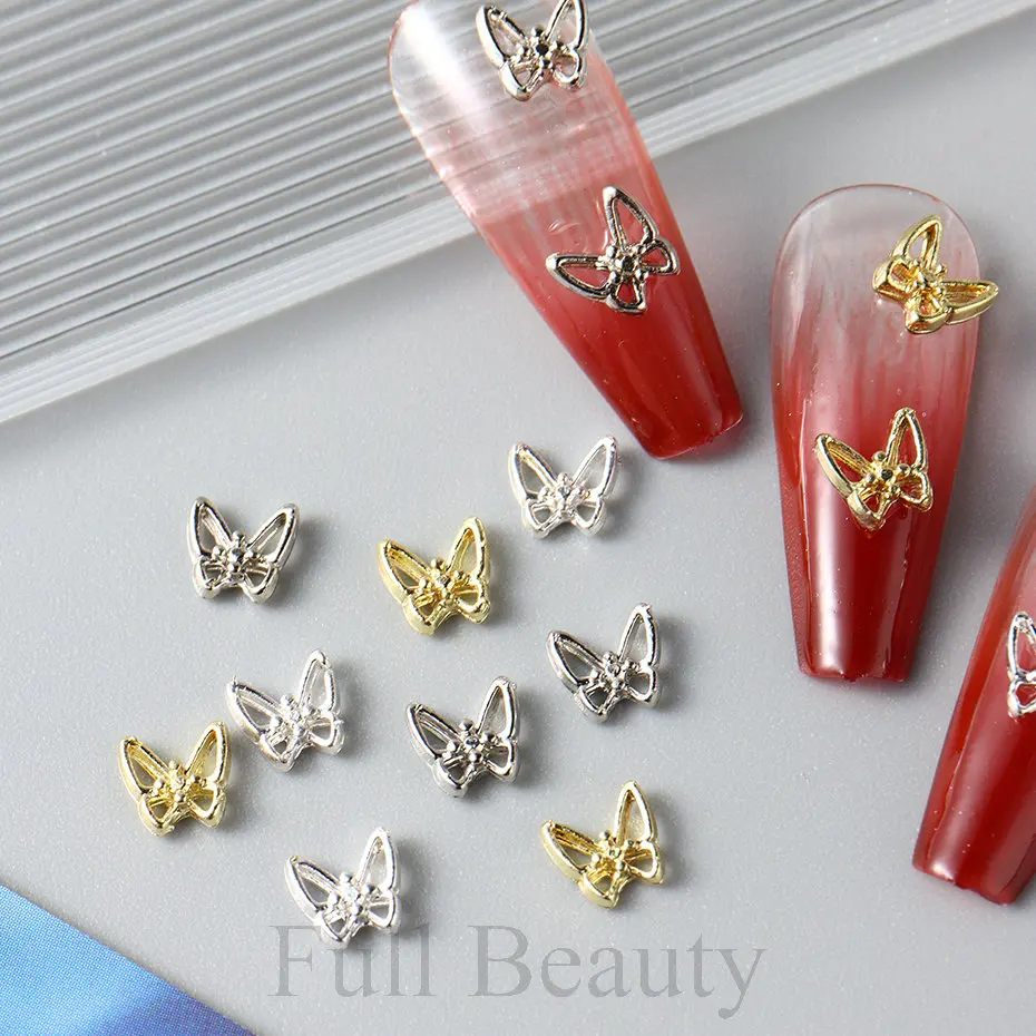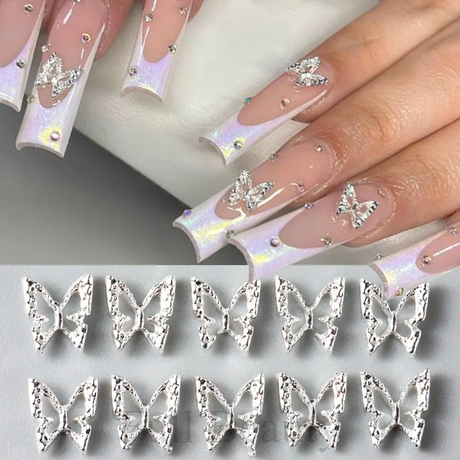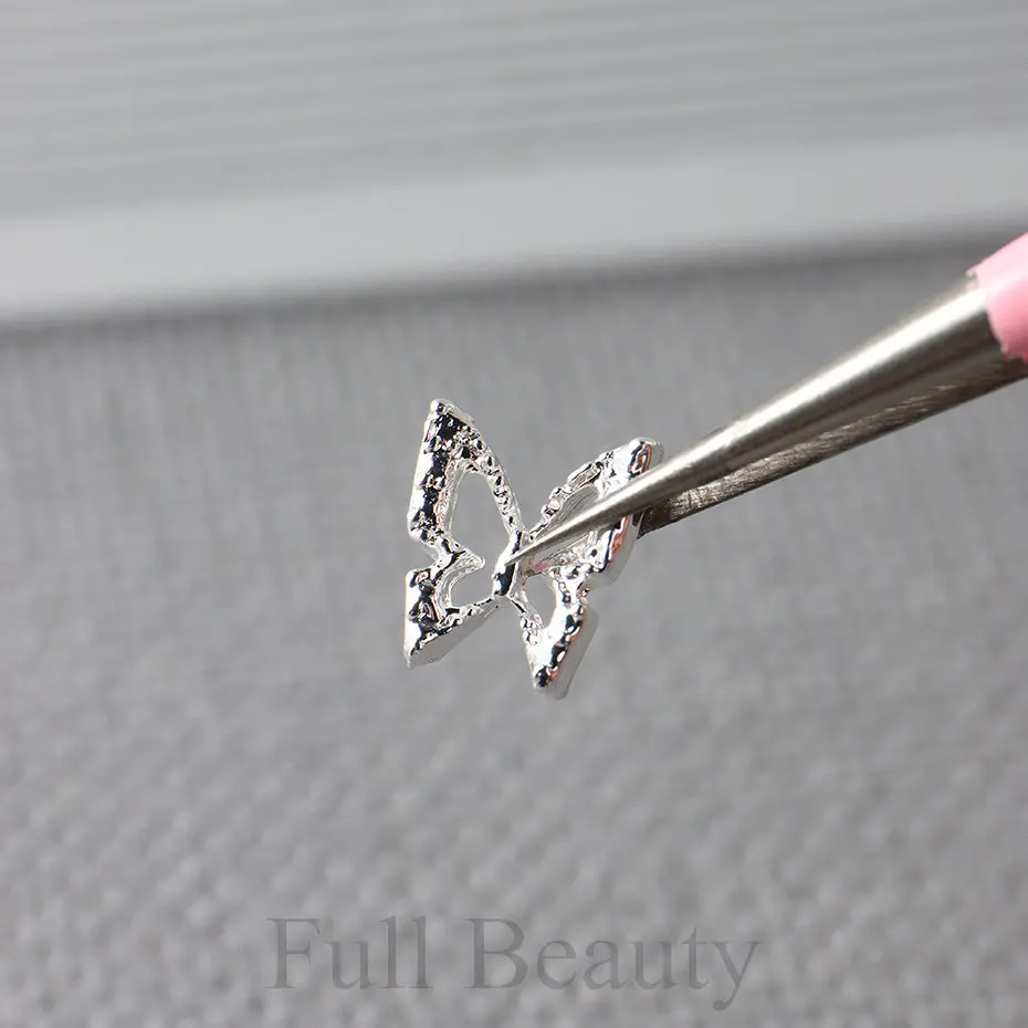 10pcs/pack Butterfly Shaped Nail Charms 3D Gold Silver Butterflies Rhinestone Zircon Jewelry DIY Nail Art Decoration Accessories