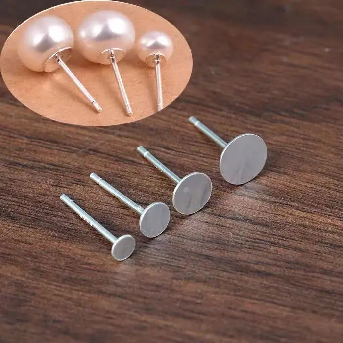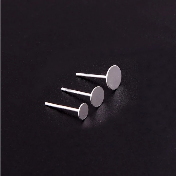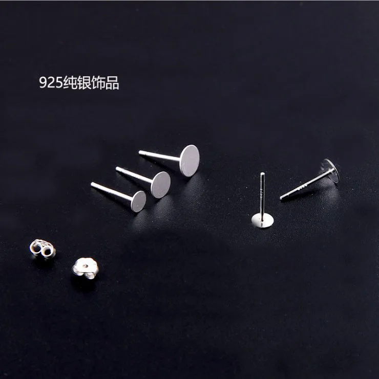10pcs Real Solid 925 Sterling Silver Earring Stud Needle Post Flat Base Pins 5 6 mm Earring Cabochon DIY Jewelry Making Findings