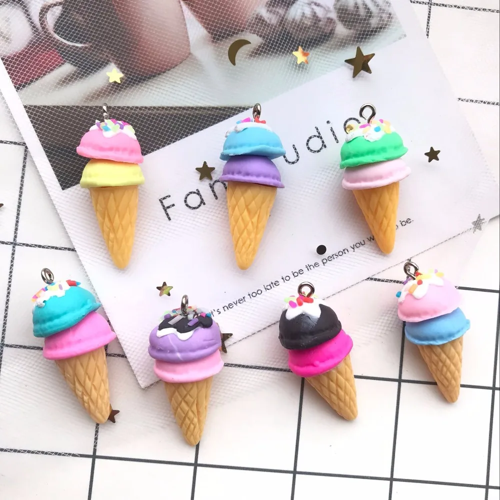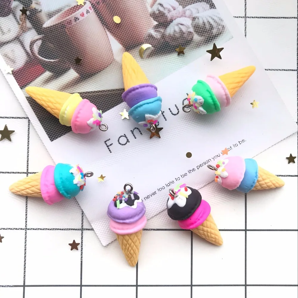 10pcs/set Polymer clay Ice cream Flat back resin food necklace charms very cute keychain pendant necklace for DIY decoration