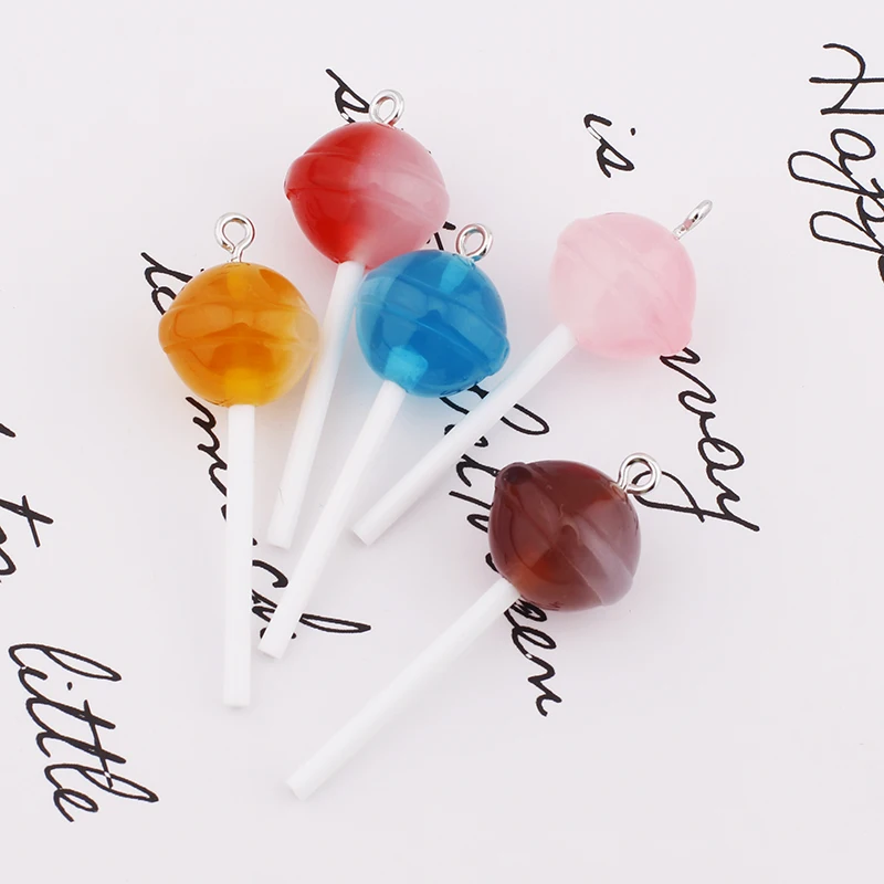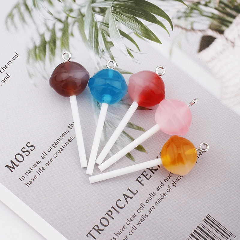 10Pcs Sugar Candy lollipop Resin Charms Diy Findings Kawaii 3D Keychain Earring Pendant Charms For Jewelry Making Suppplies