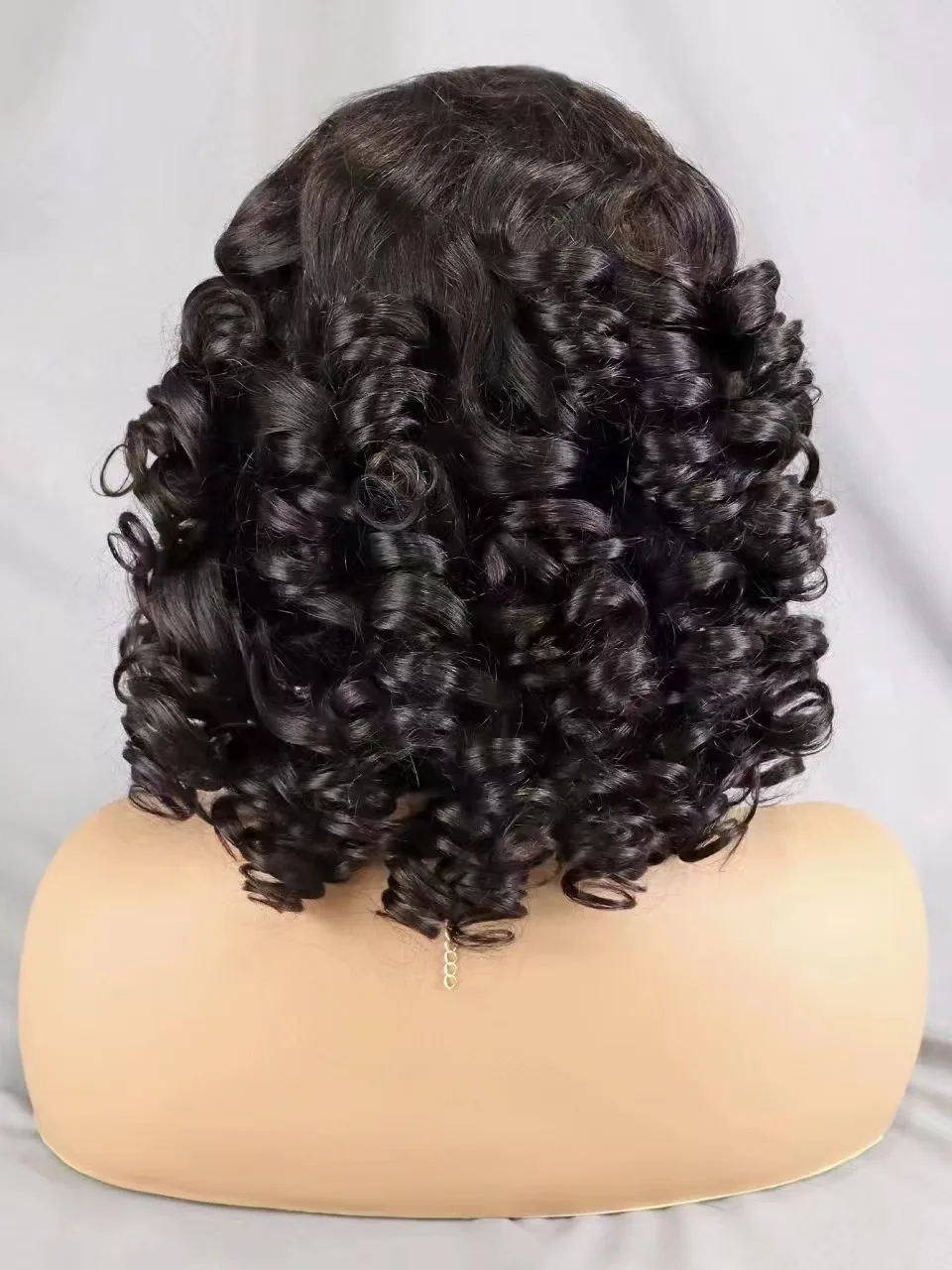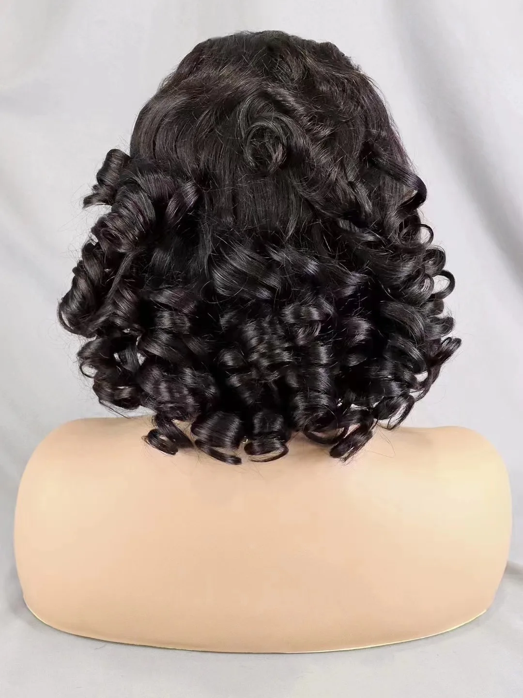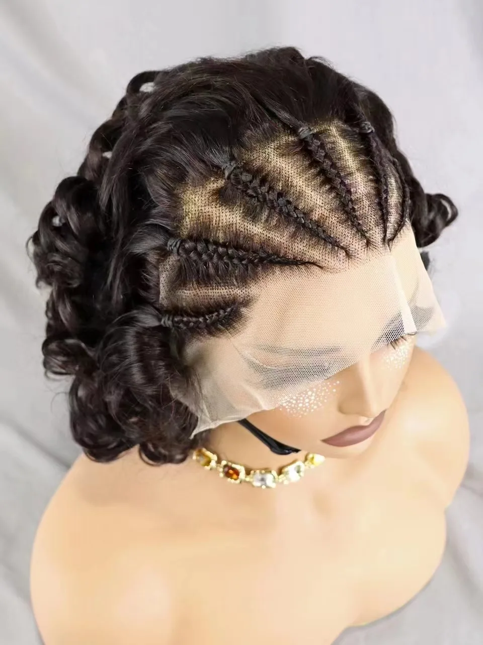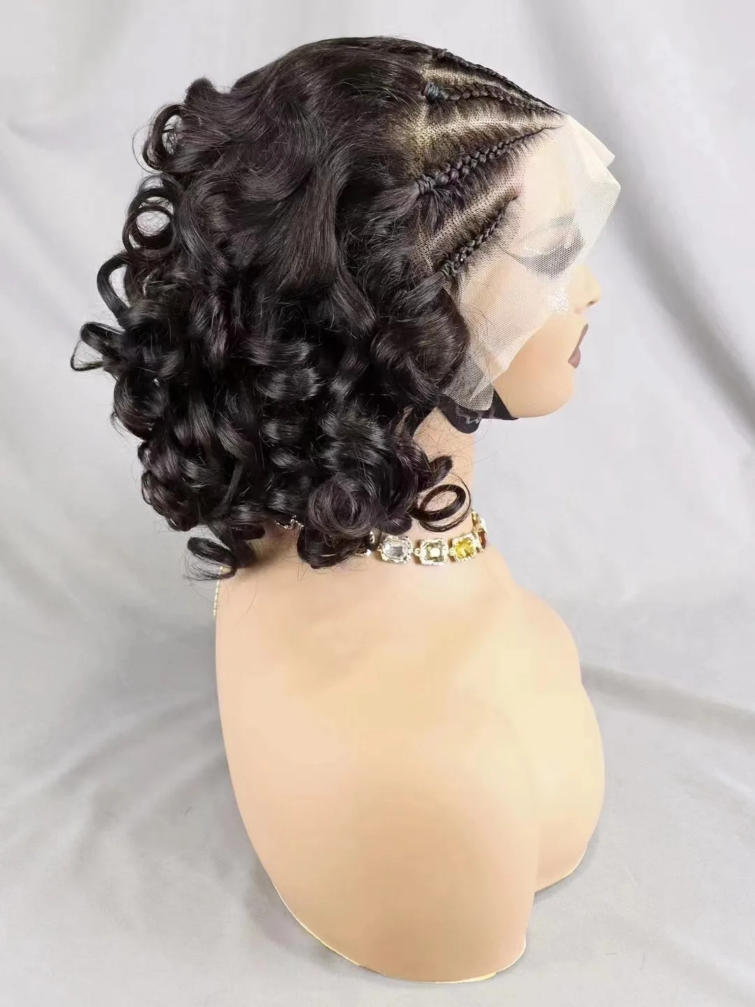 12-18 Inches Natural Color Fumi Loose Wave Bob Human Hair Wig with Braids for Black Women Brazilian Remy Hair Pre Plucked