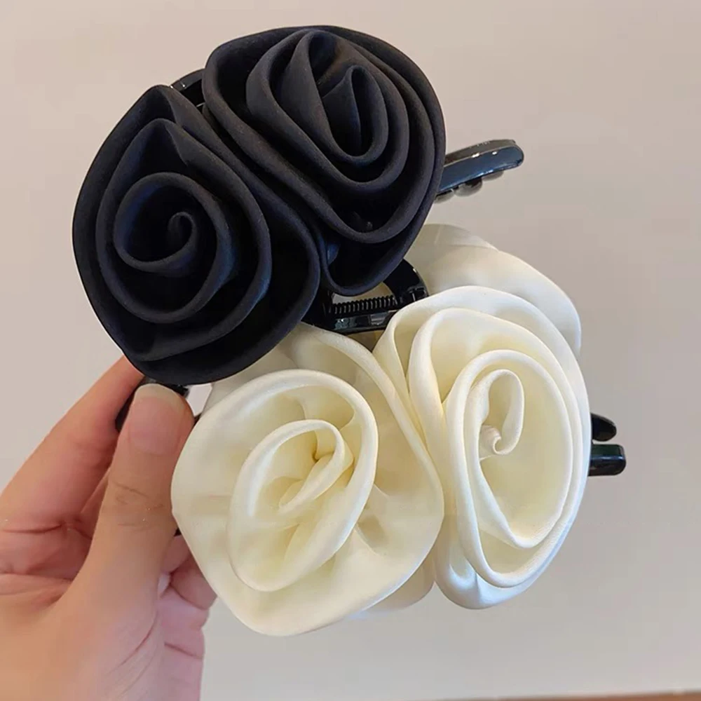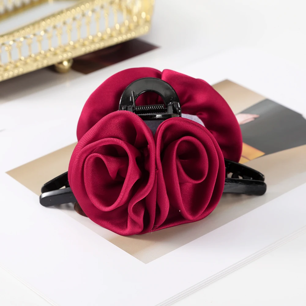 12.5cm Large Size Hair Claw Fabric Rose French Hair Clip Black Wine Red Festival Hair Accessories Hairpin Fashion Hair Crabs
