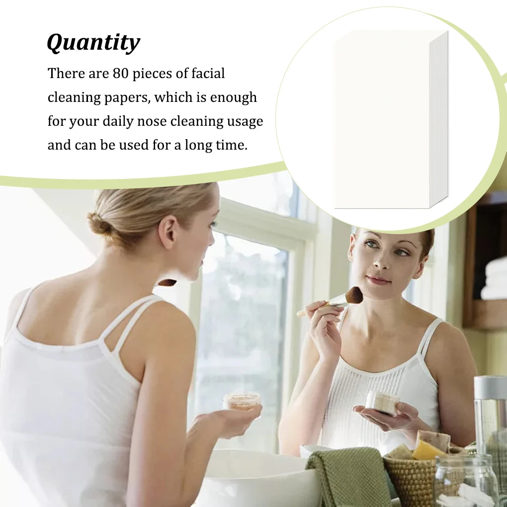 Quantity: There are 80 pieces of facial cleaning papers, which is enough for your daily nose cleaning usage and can be used for a long time.