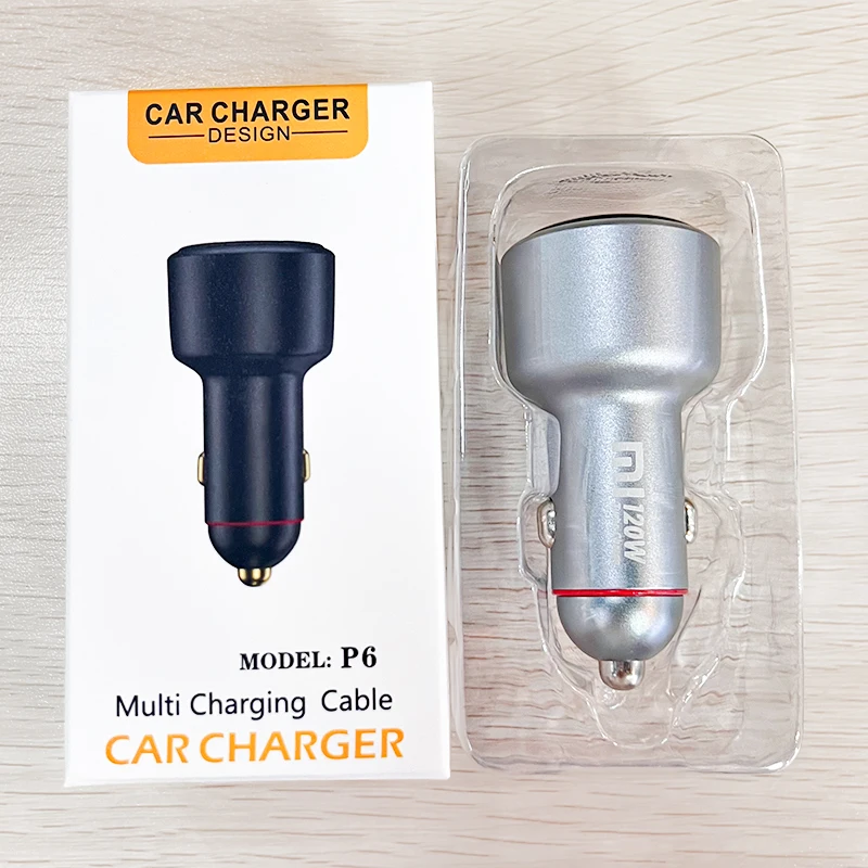 4、1pc* Xiaomi 120W Dual USB Port Car Charger + 1pc*2M 6A Cable