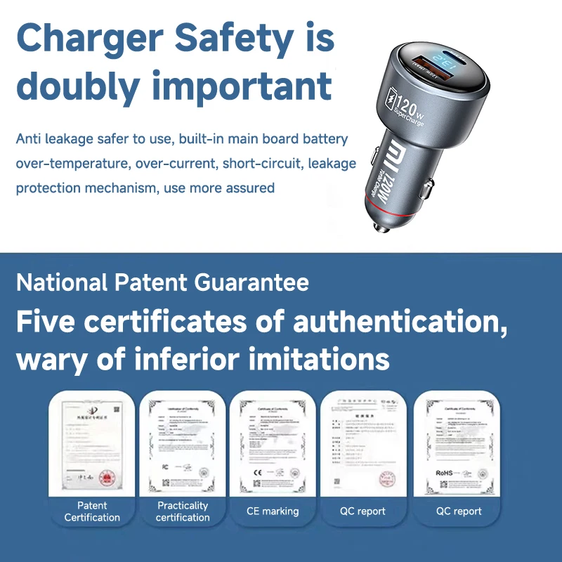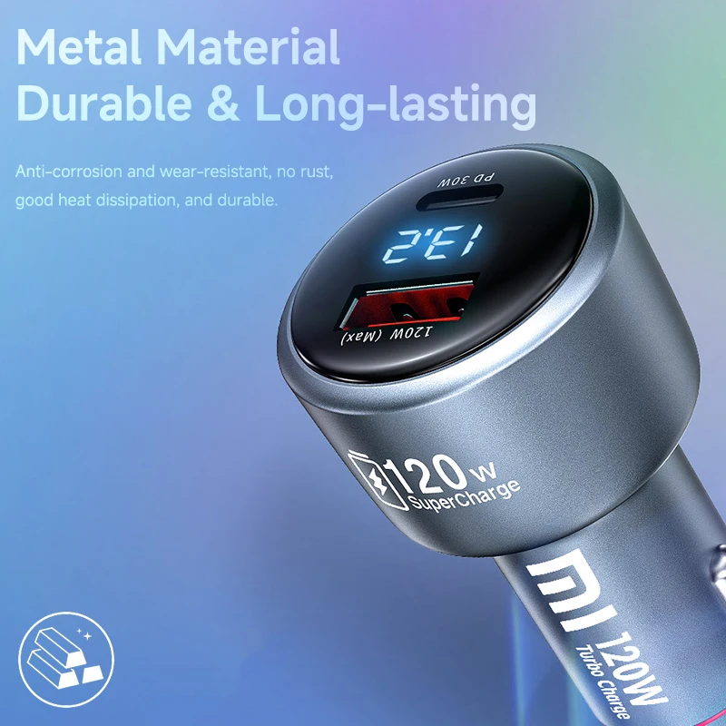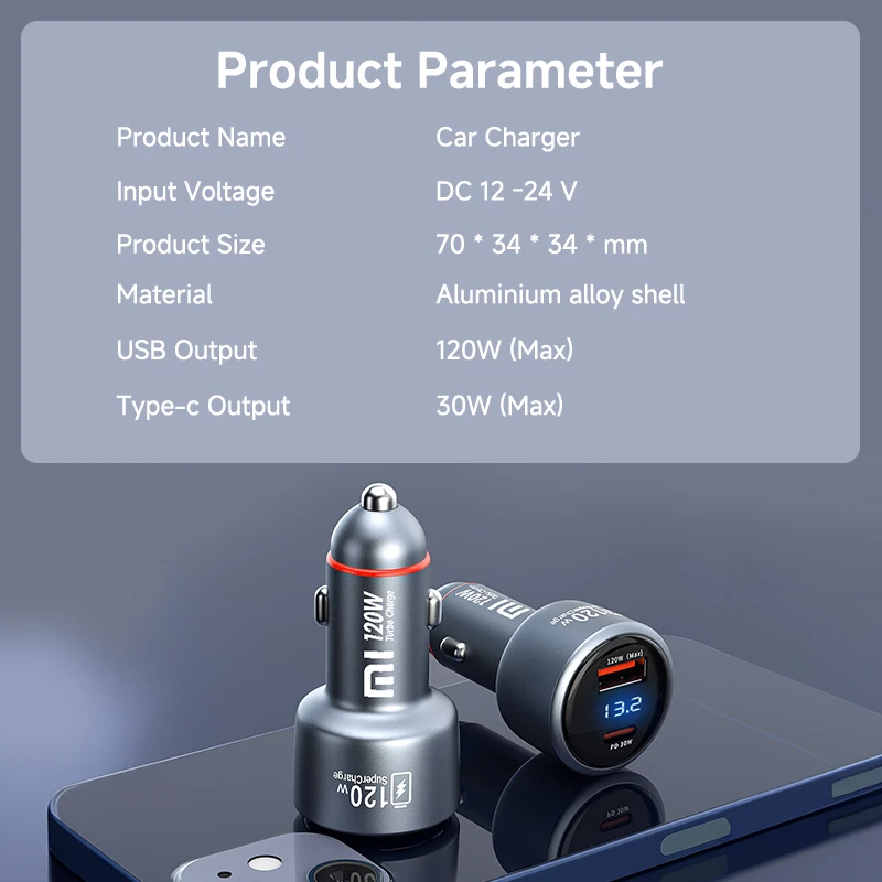 1、1pc* Xiaomi 120W Dual USB Port Car Charger