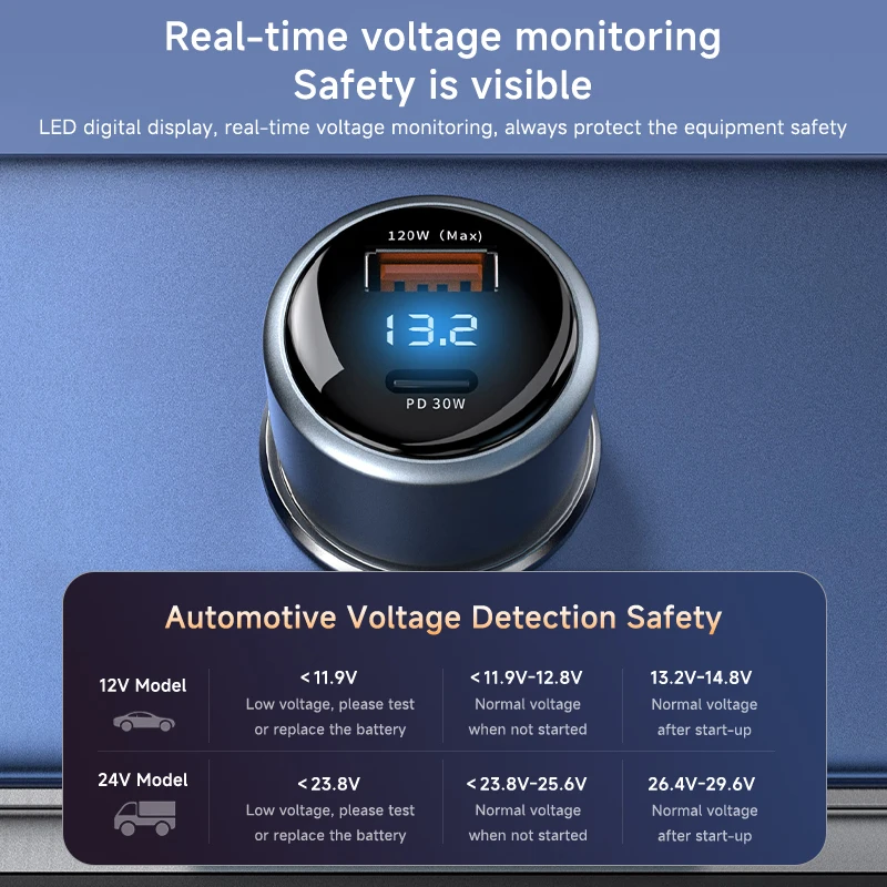 3、Voltage Monitor & LED Light:This for Xiaomi 14 Pro charger has a battery voltage monitoring function to assist you in ensuring driving safety. No fear of darkness, the righ light design makes you easy to locate interface while driving. This for Redmi note 13 Pro charger fits for DC 12V~24V car models.