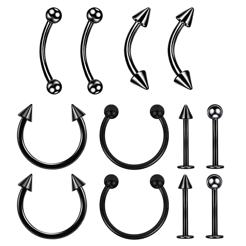 12PC Titanium Tragus Piercing Nose Earring Septum Labret Lip Ring Cartilage Industrial Tongue Barbells Eyebrow Body Jewelry