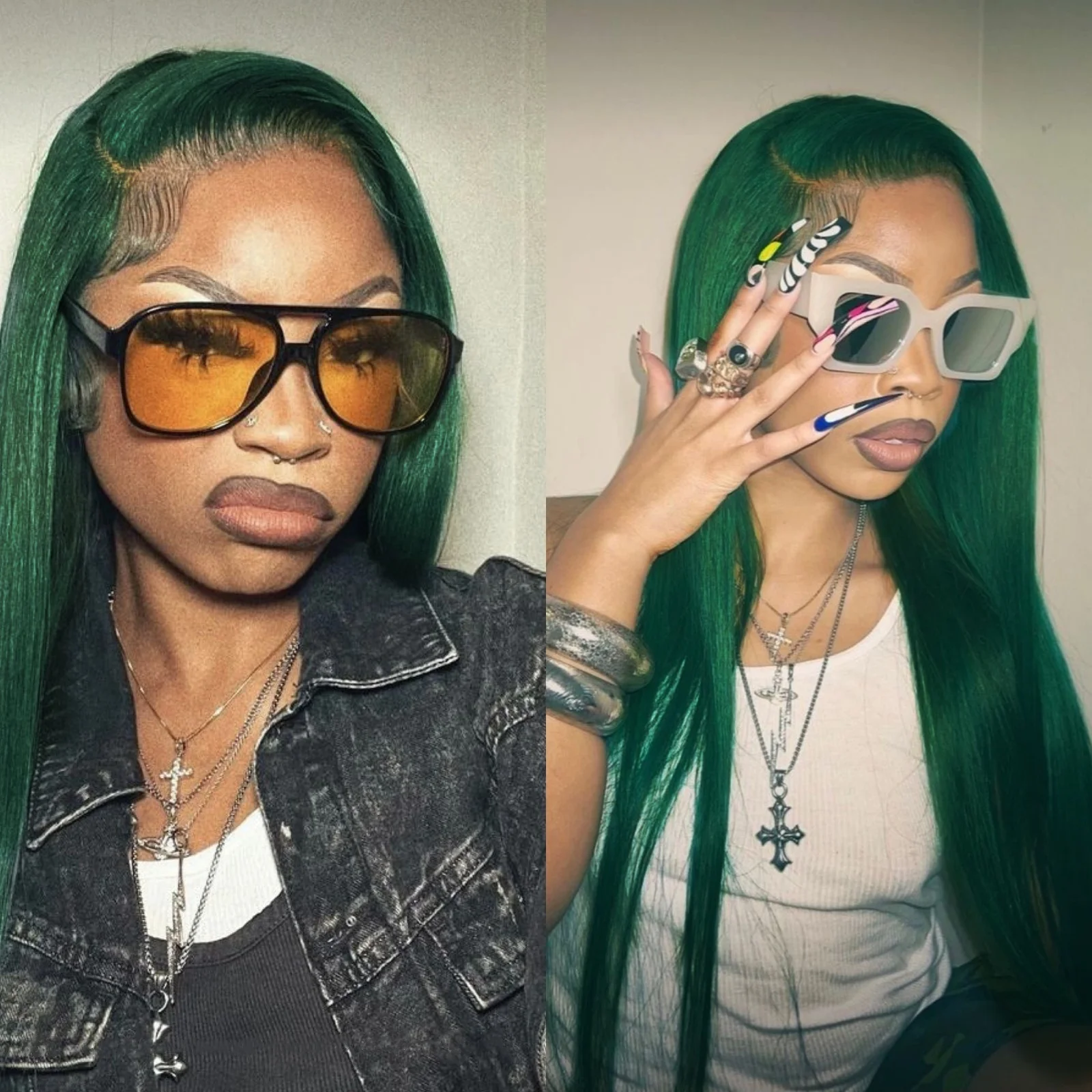 13X4 Dark Green Lace Front Wig Long Straight Synthetic Wig Long Green Colored Hair Lace Frontal Wigs for Women Heat Fiber