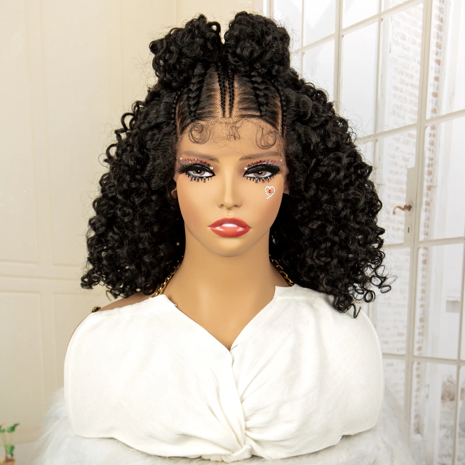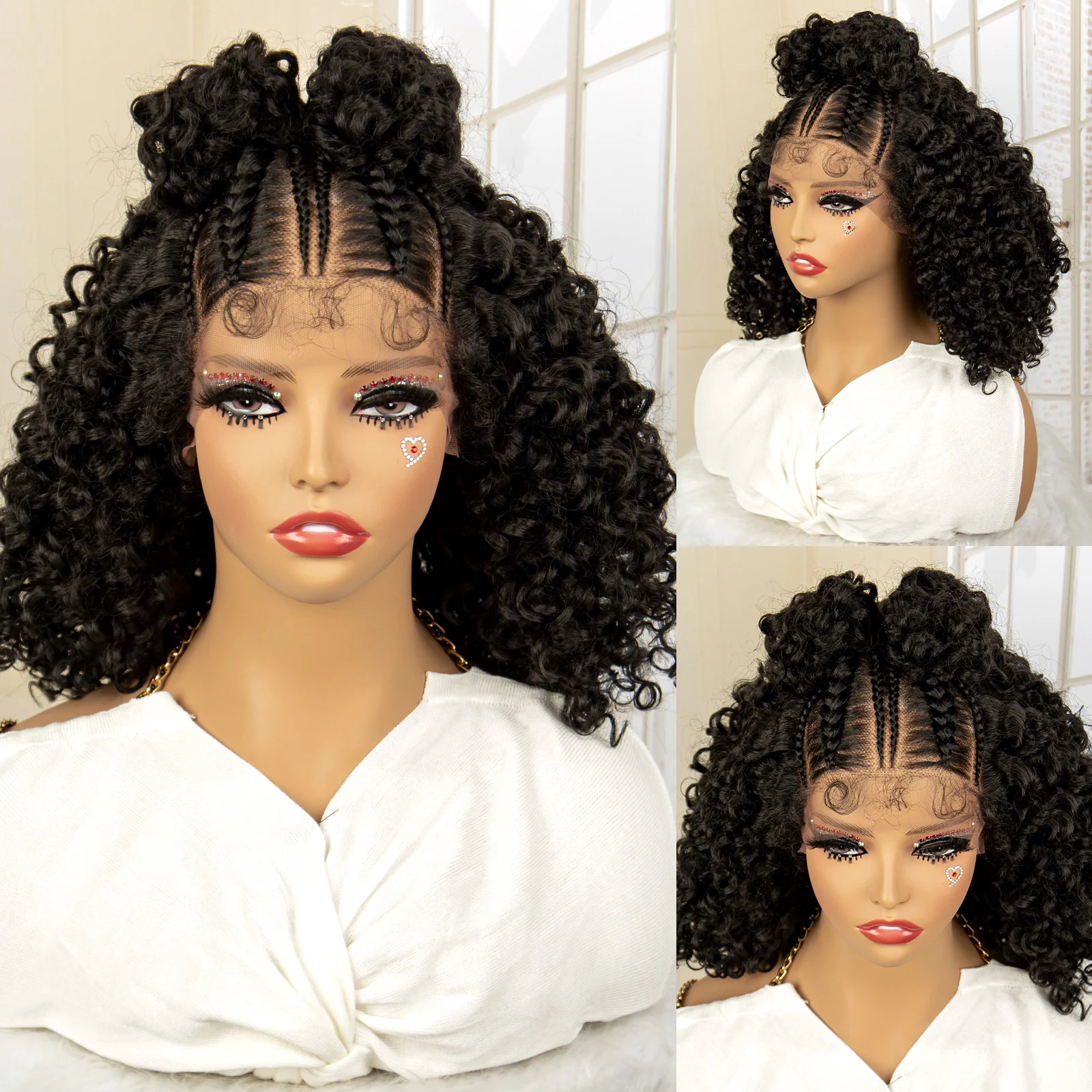 13X4 Lace Frontal Synthetic Braided Wigs for Black Women Braid Wig with Baby Hair 16inches Afro Curly Bob Wigs Braided Wig