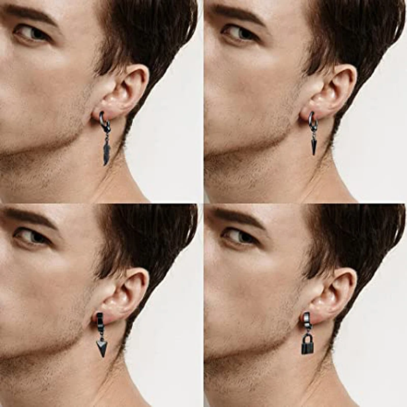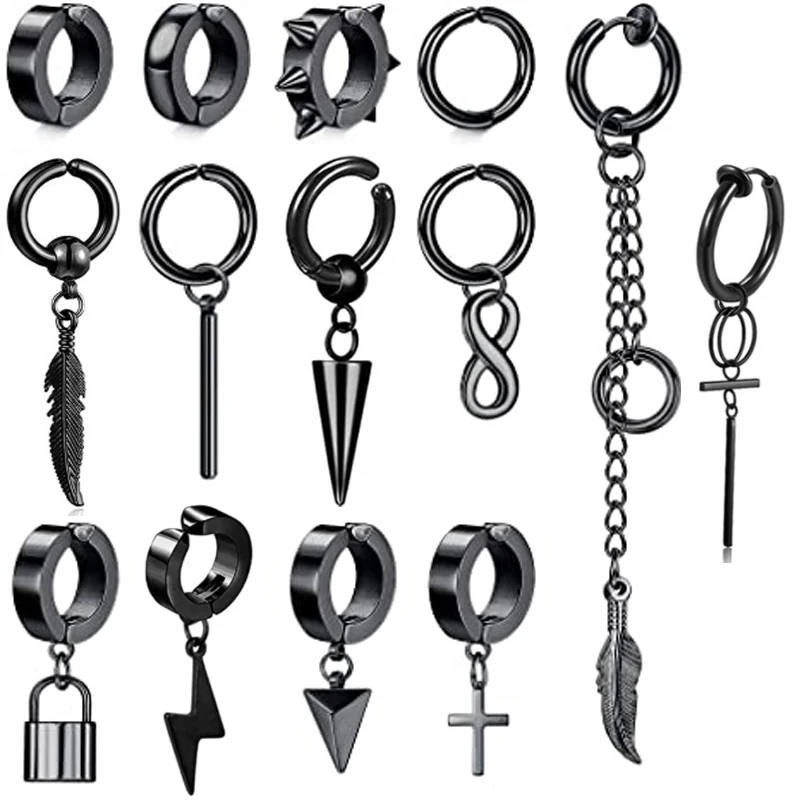 14 Pieces/1 Piece Clip Earrings Boy Kpop Earrings Set Chain Drop Earrings For Men And Women Huggie Hinged Hoop Drop Earrings
