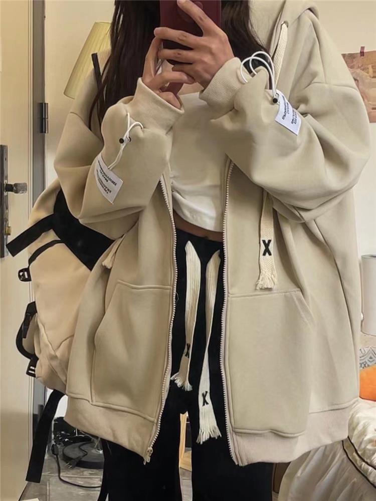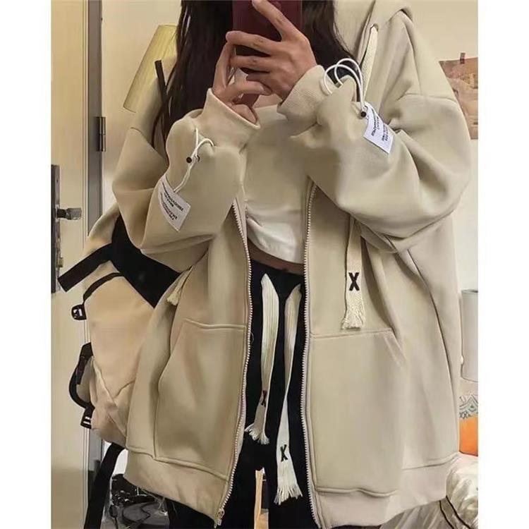 150.00kg Plus Size American Hooded Sweatshirt Female Plus Size Ladies Loose BF Idle Style Long-Sleeve Zipper Cardigan Outerwear Top