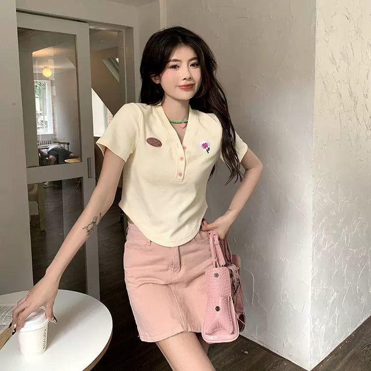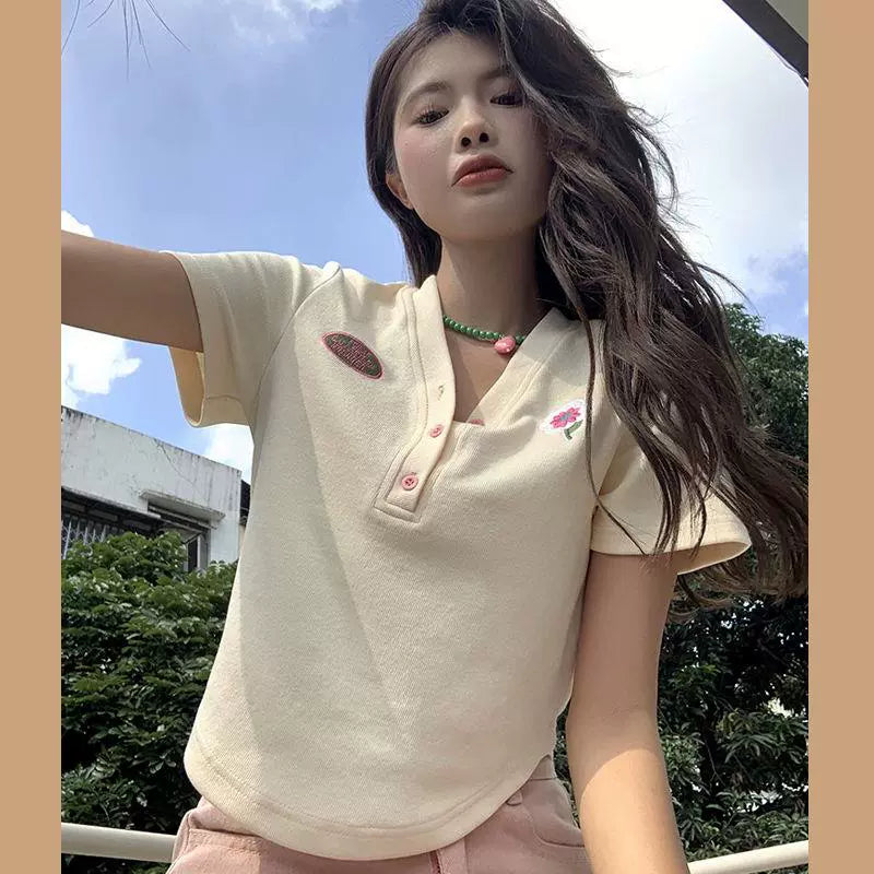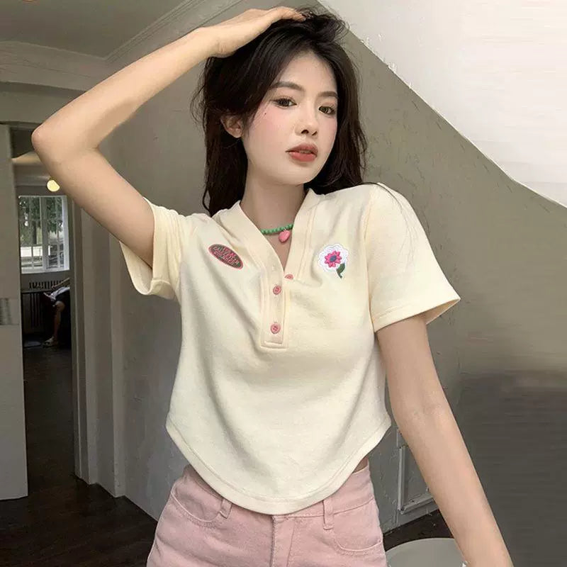 150.00kg Plus Size T-shirt Female Stylish Niche Style Plus Size Ladies Summer Sweet Sexy Chic Unique Asymmetrical Short Tops