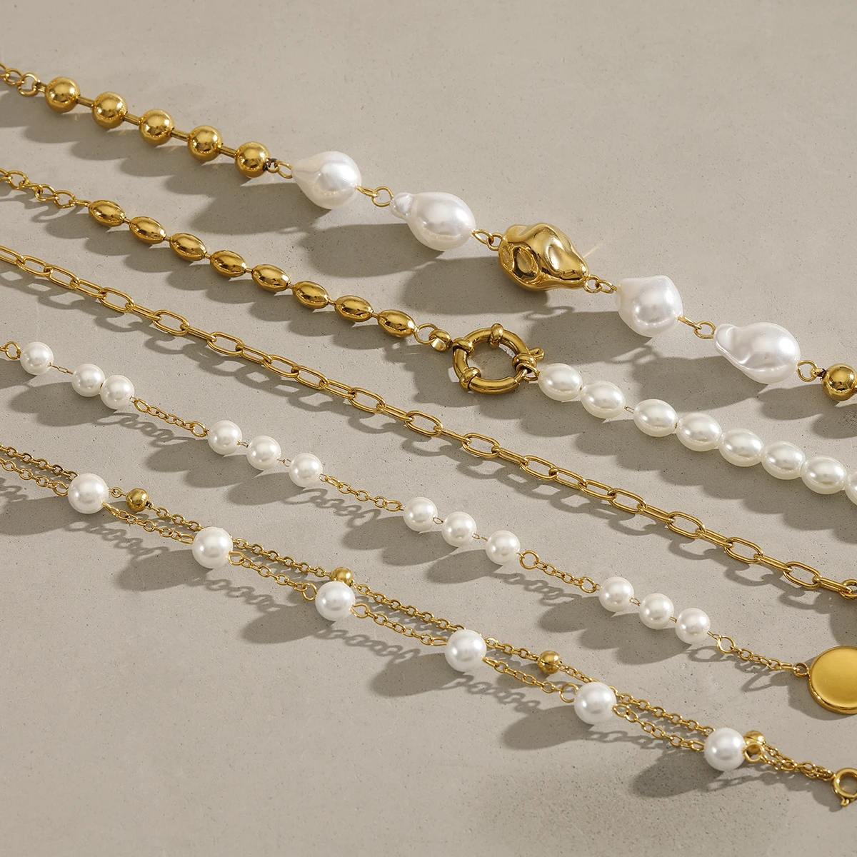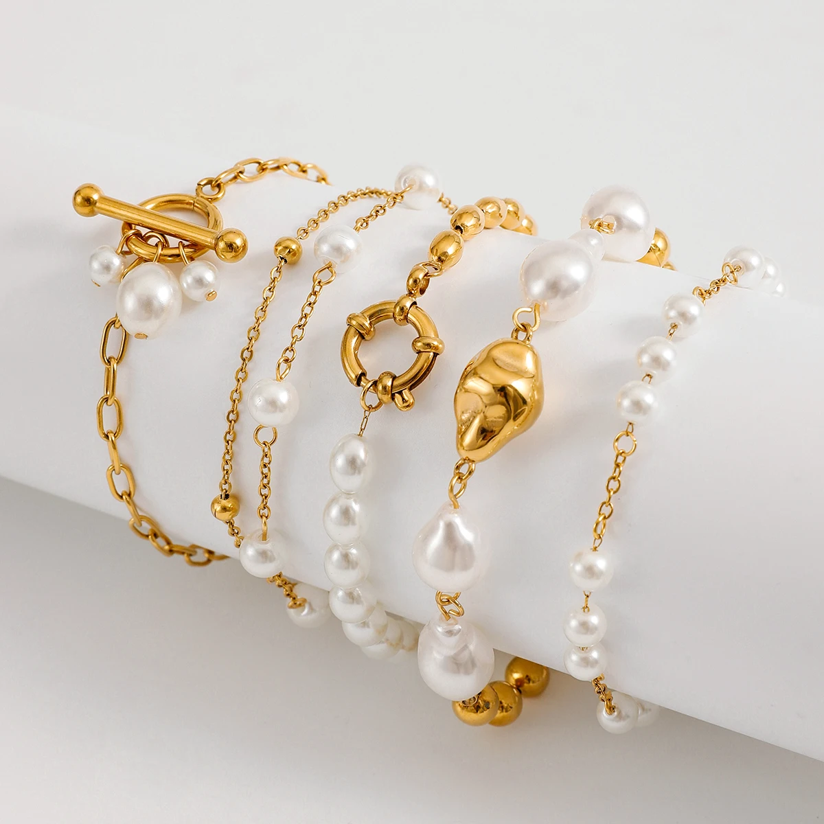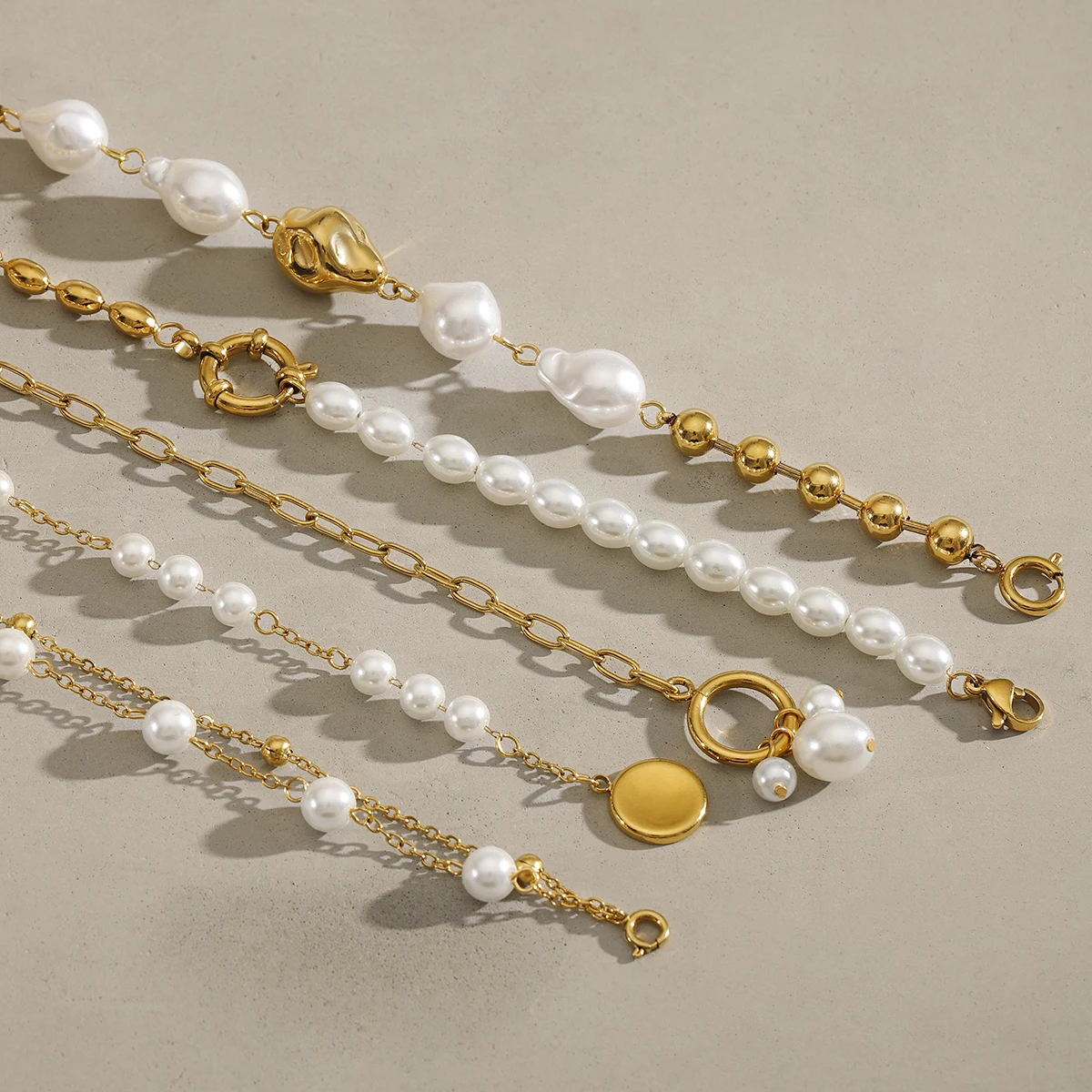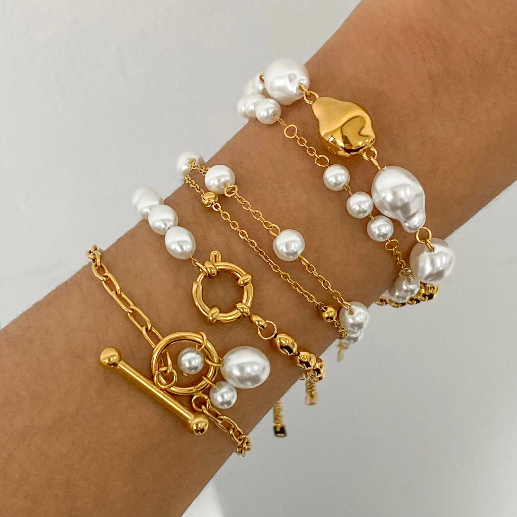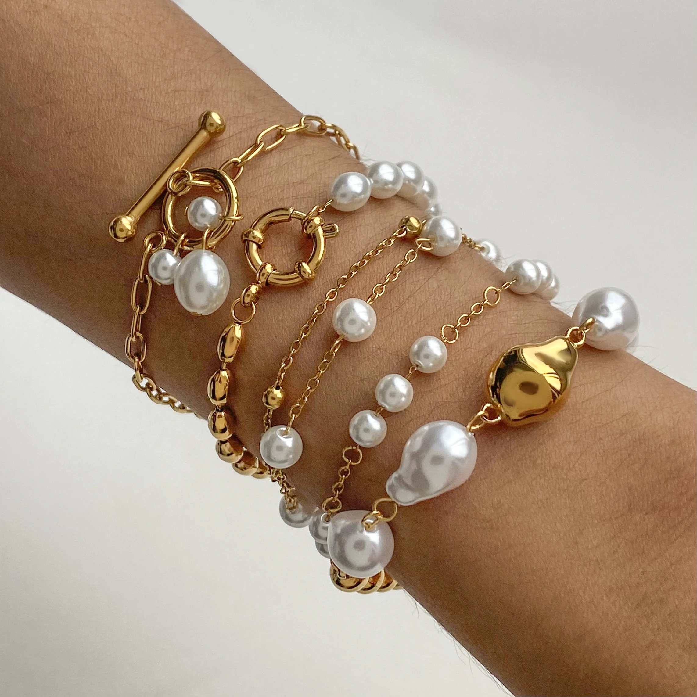 18K Gold Plated Bead Chain Irregular Shaped Glass Pearl Bracelet Chain Women Stainless Steel Rust Proof Anti Allergic Jewelry