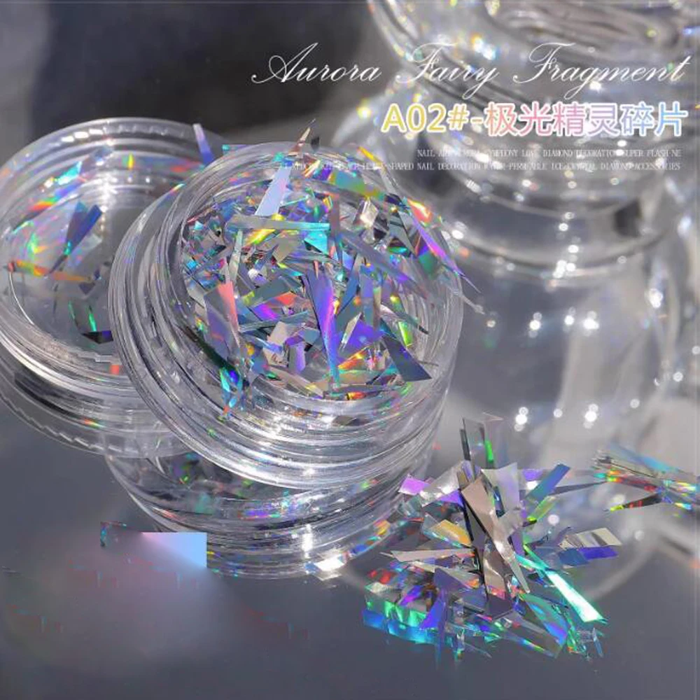1Box Irregular Aurora Mirror Broken Glass Paper Nail Foil Decals Japanese Laser Patch DIY Rainbow Transfer Piece Manicure Decor#