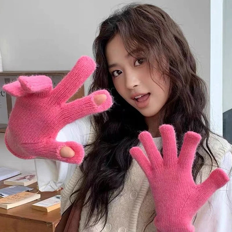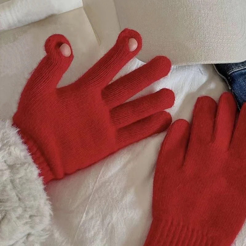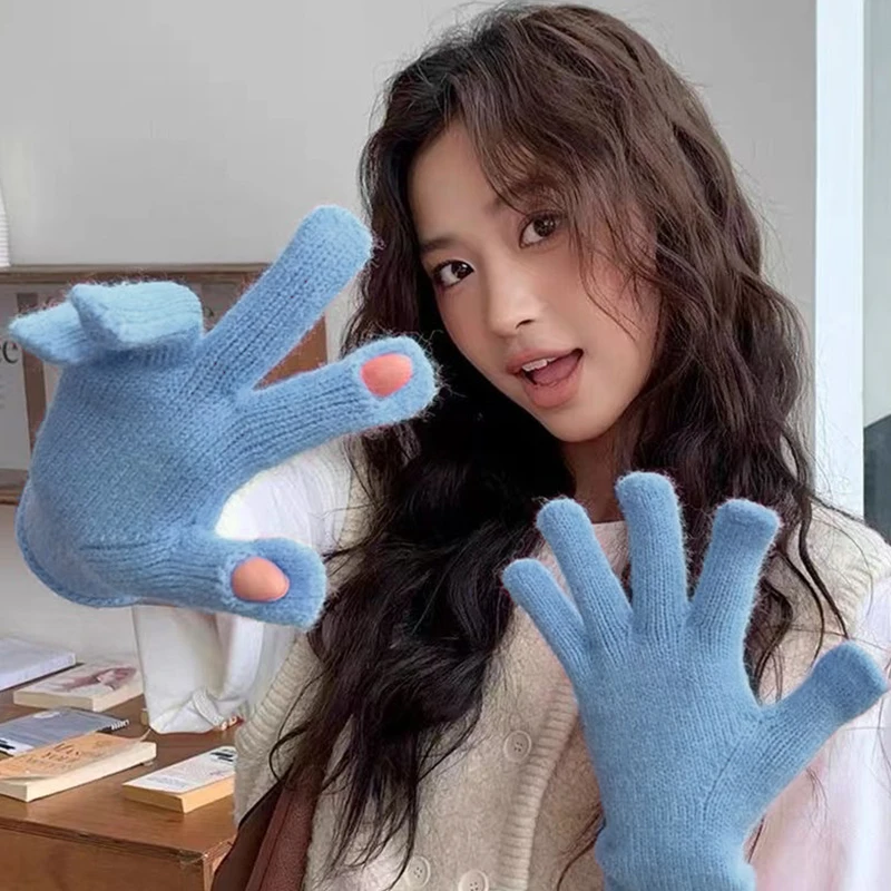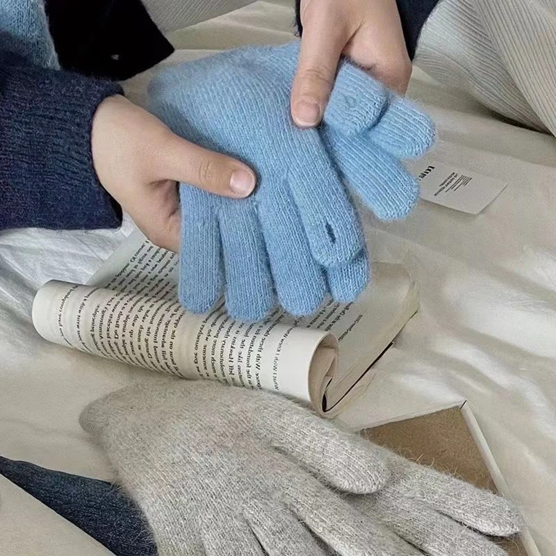 1Pair Autumn Winter Warm Gloves Wool Knitted Touchscreen Gloves Full Finger Mittens Outdoor Skiing Ride Casual Windproof Guantes