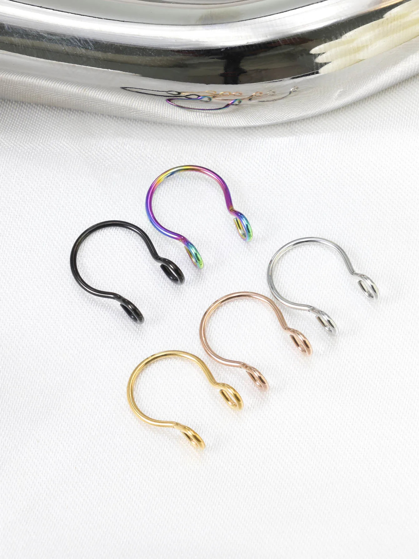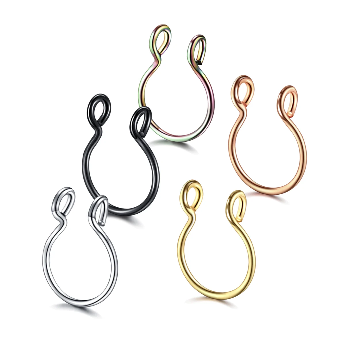 1Pc/5pcs Set Horseshoe Fake Nose Ring false,U Shaped Nath false Septum Rings,316L Stainless Steel Fake Nose Piercing,Non Pircing