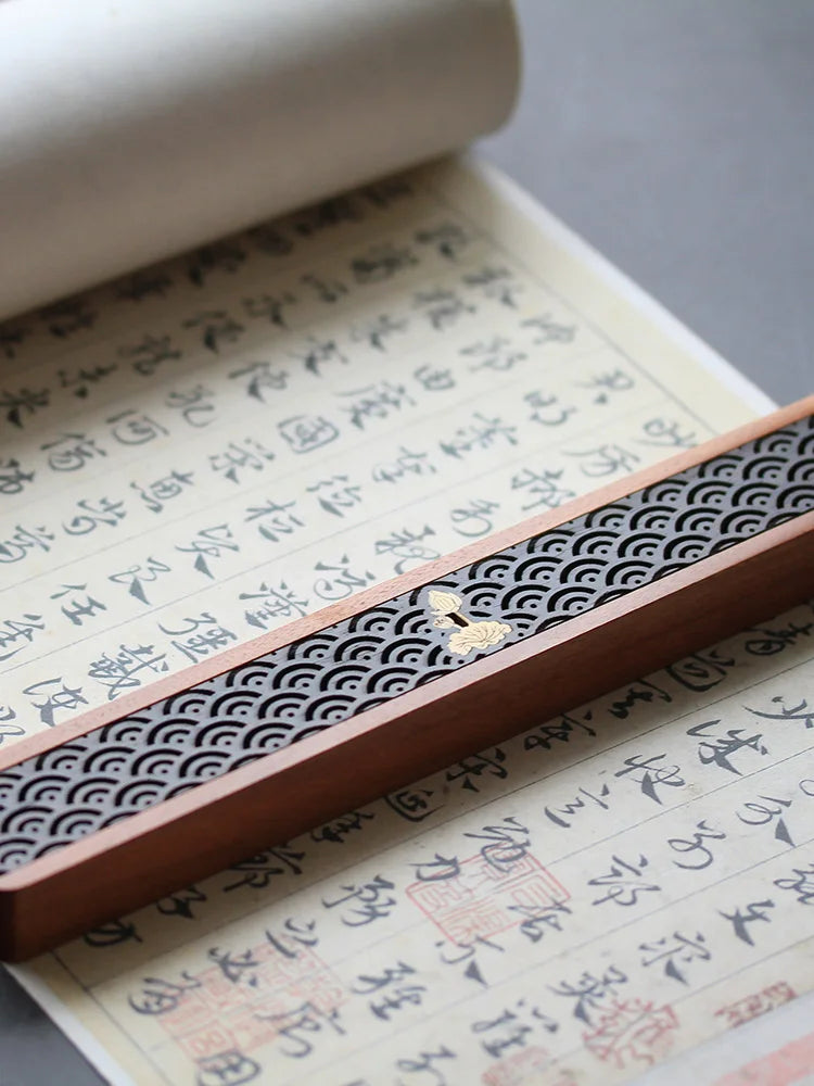 1pc Antique personality solid wood hollowed out line incense box portable sleeping incense box incense box incense fumigation