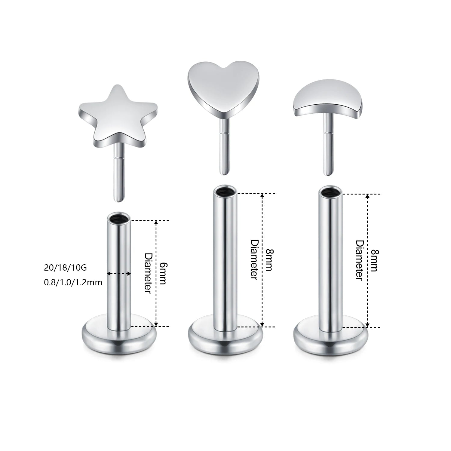 1Pc Lip Piercing Body Jewelry Plug-in Lip Stud for Women Trendy Ear Cuff Stainless Steel Star Moon Lip Stud Earrings Ear Studs