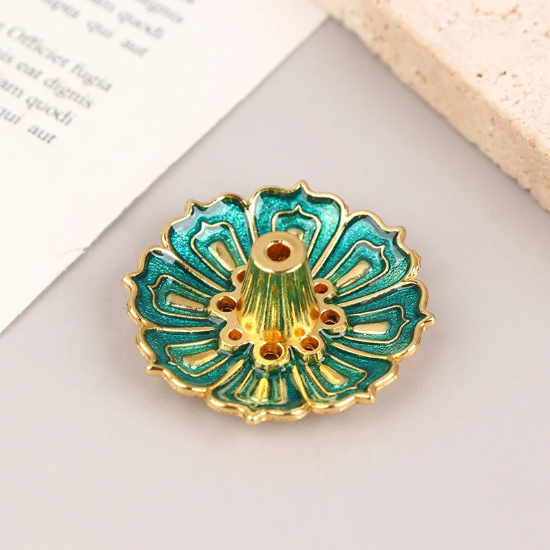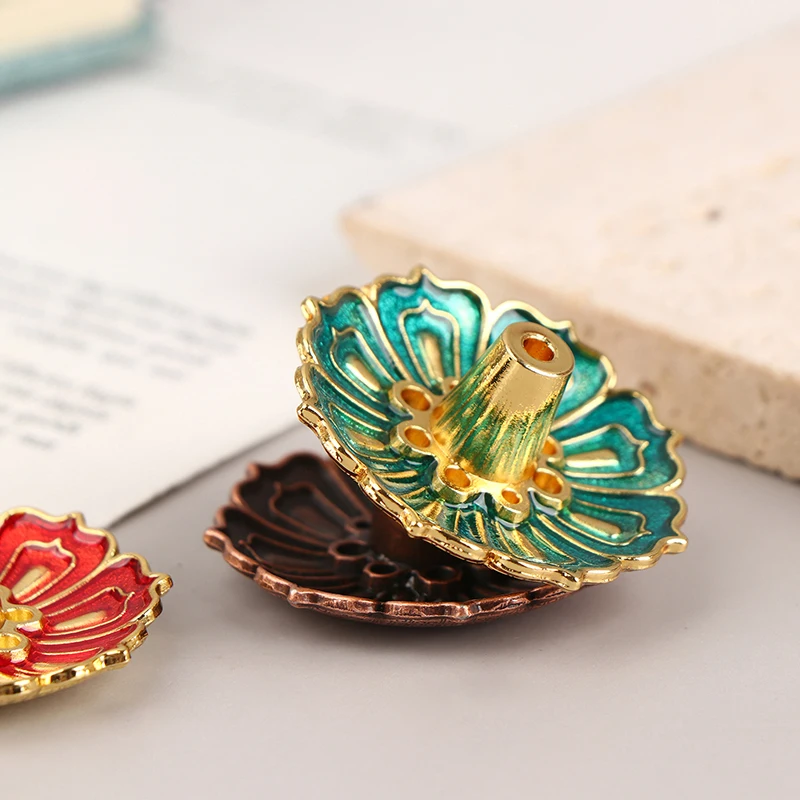 1Pc Lotus Alloy Incense Burner Stick Holder Home Buddhism Line Incense Plate Sandalwood Coil Base Delicate Temples Home Decor