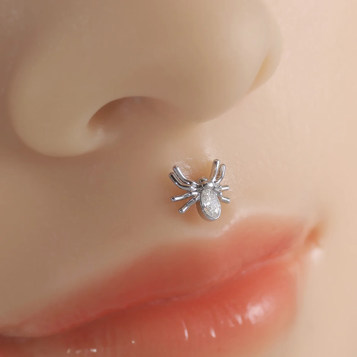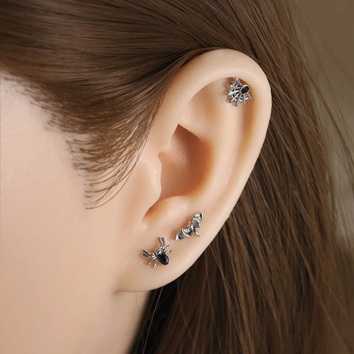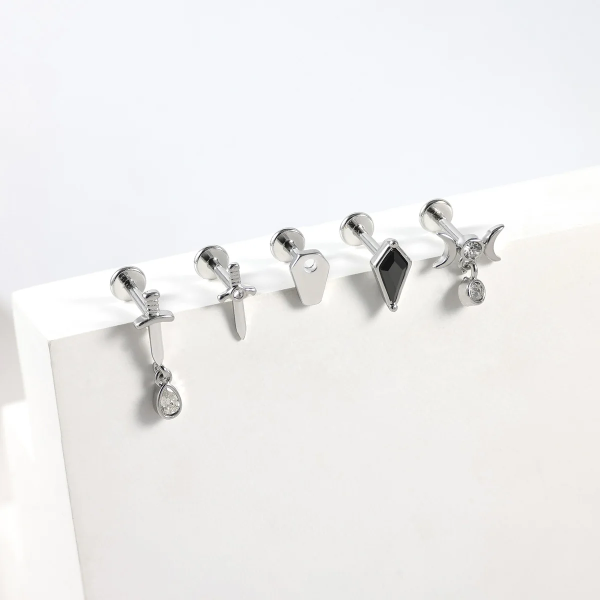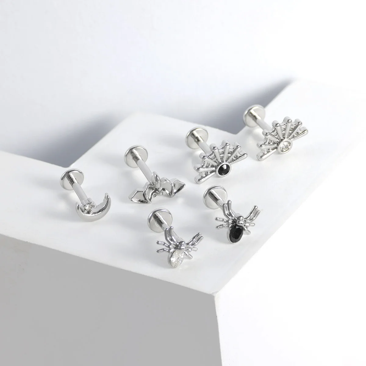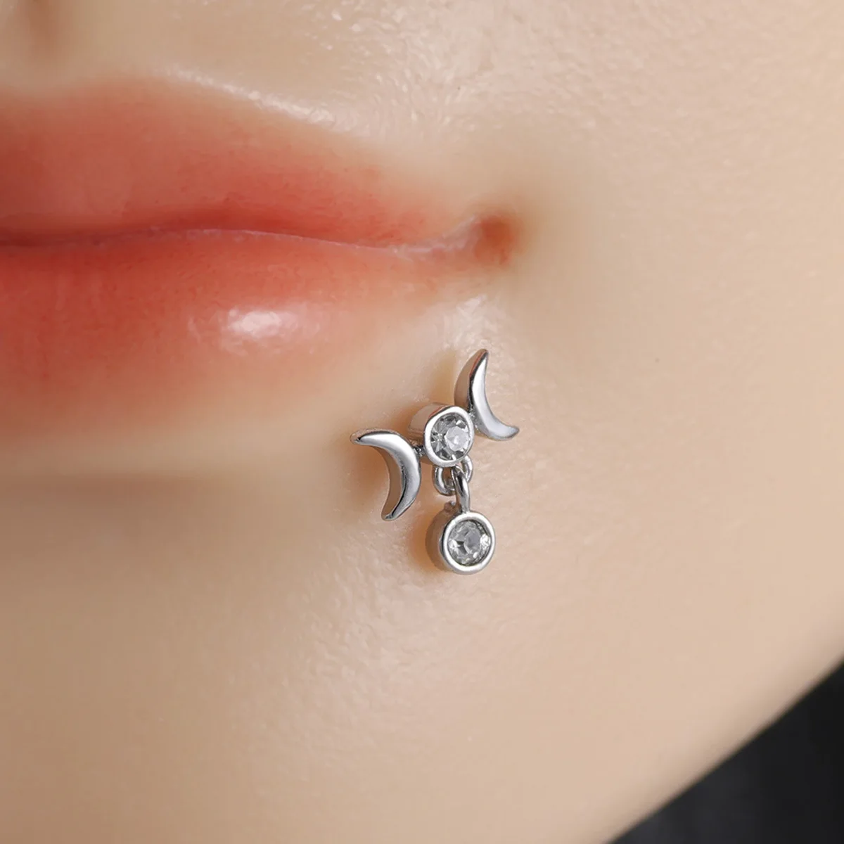1pc Stainless Steel Rhinestone Lip Stud Crescent Pendant Cross Spider Fan Cartilage flat back Ear Stud Tragus Piercing Earrings