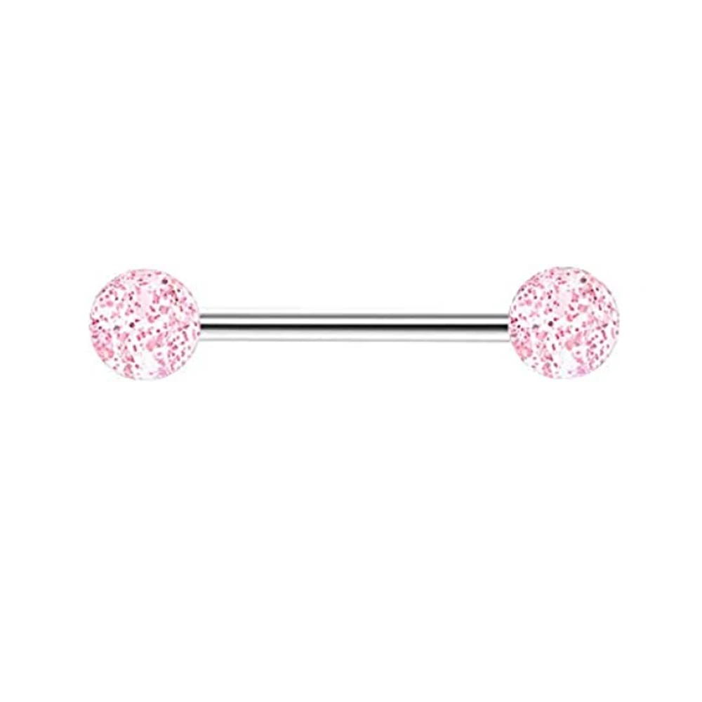 1PCS-4PCS Stainless Steel 14G Tongue Rings Barbell Pink Tongue Barbell Jewelry for Women Piercing Tongue Body Piercing Pink