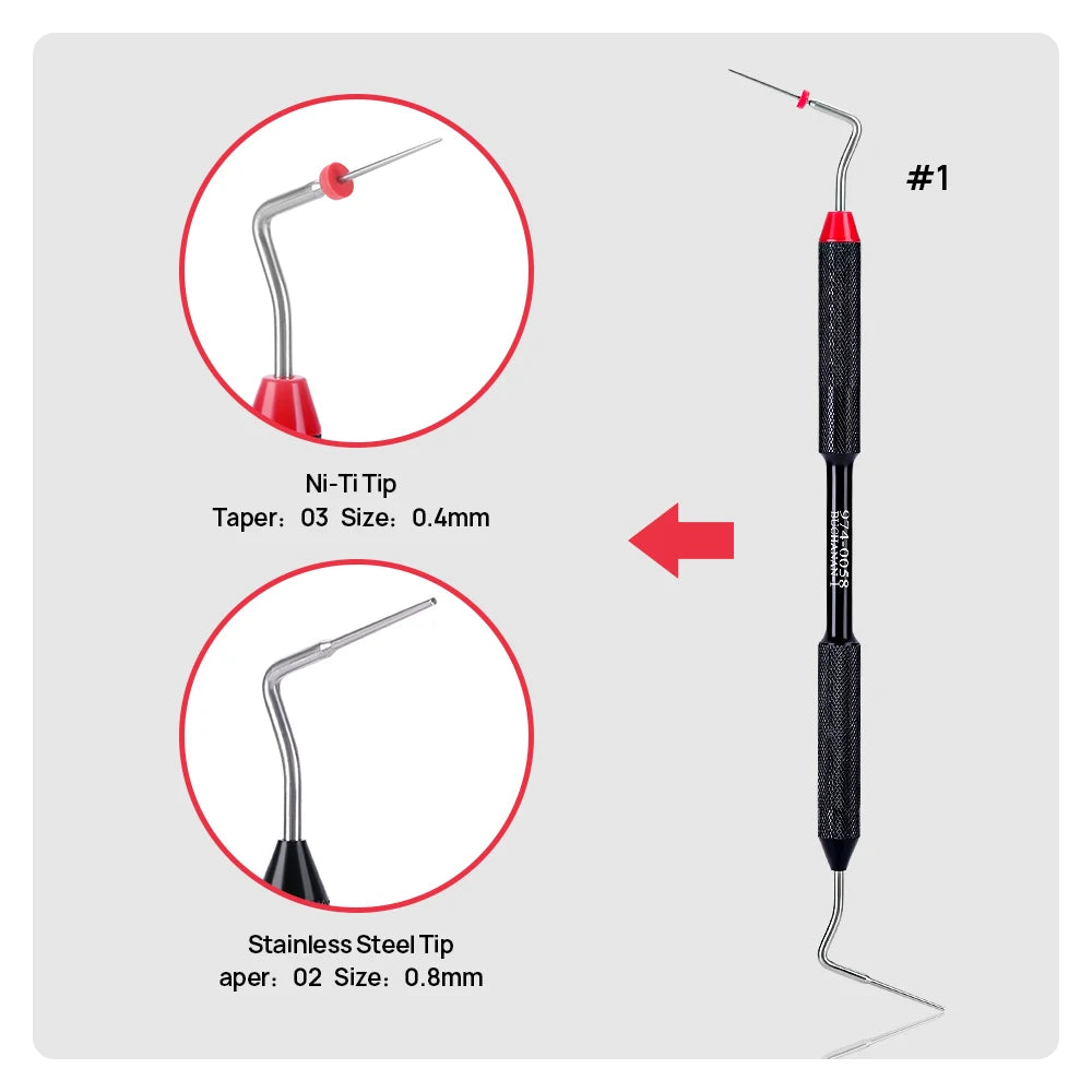 974-0058 Buchanan Hand Plugger Size #1 Stainless tip size .02/80 NiTi Tip Size.03/.40 Red Tip