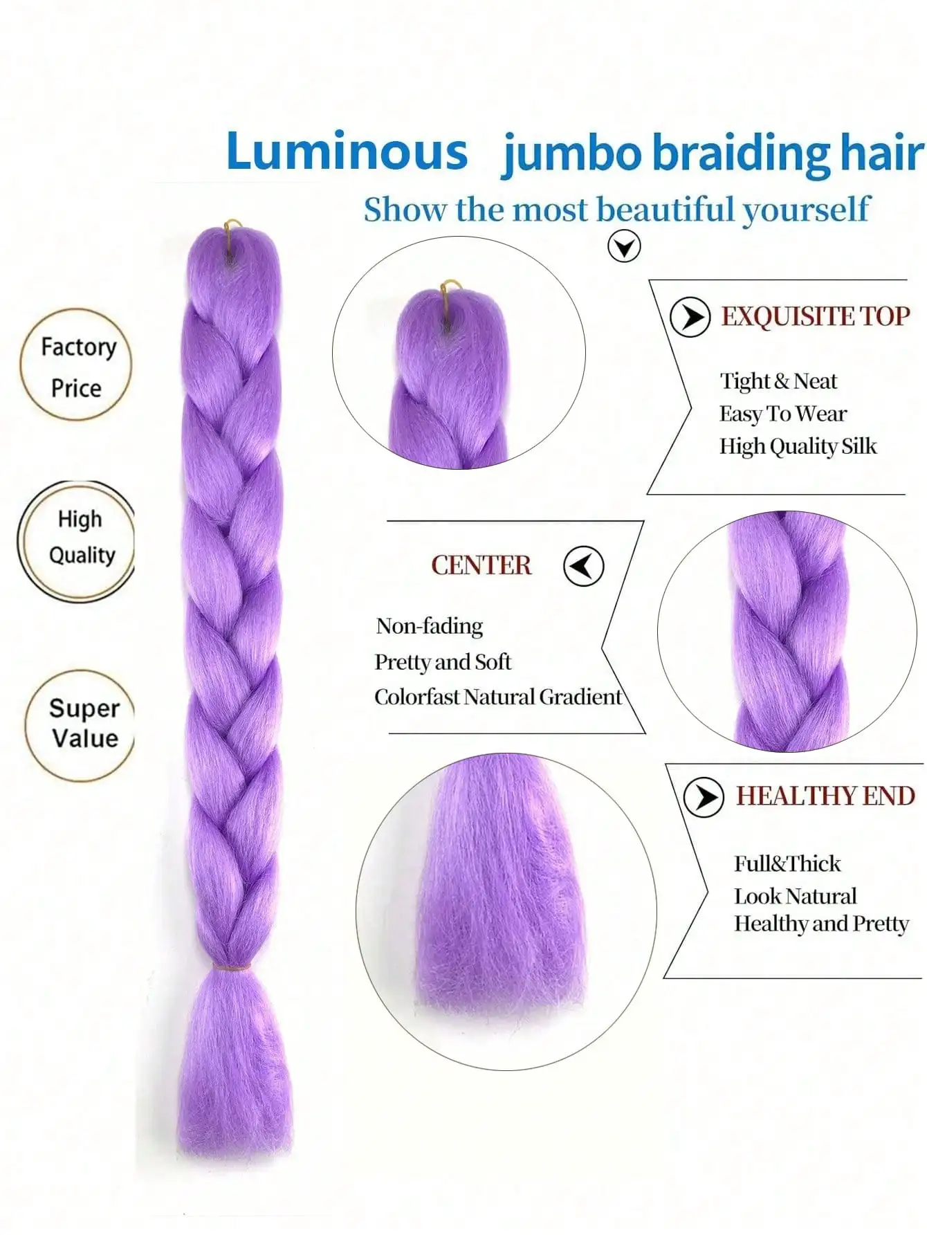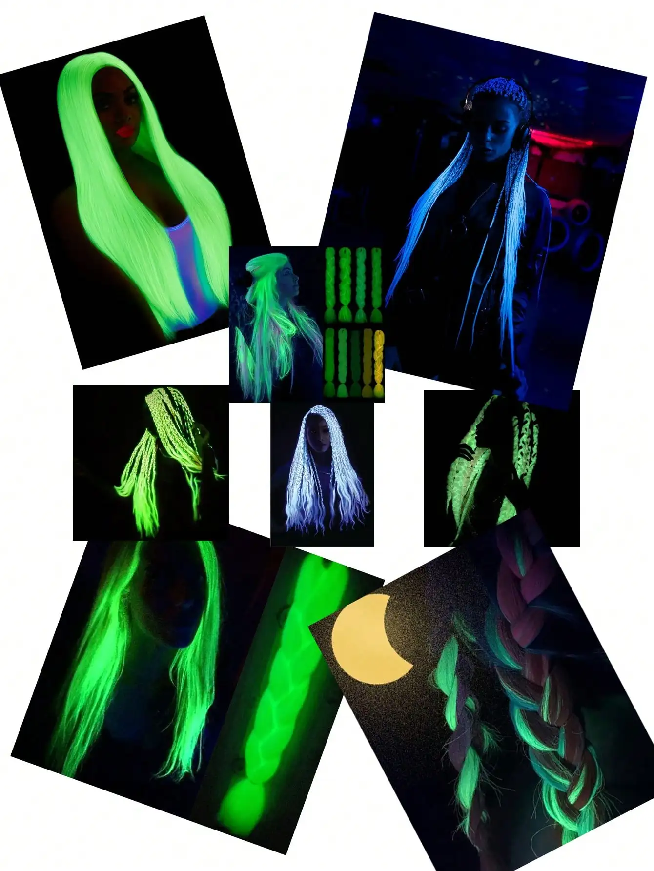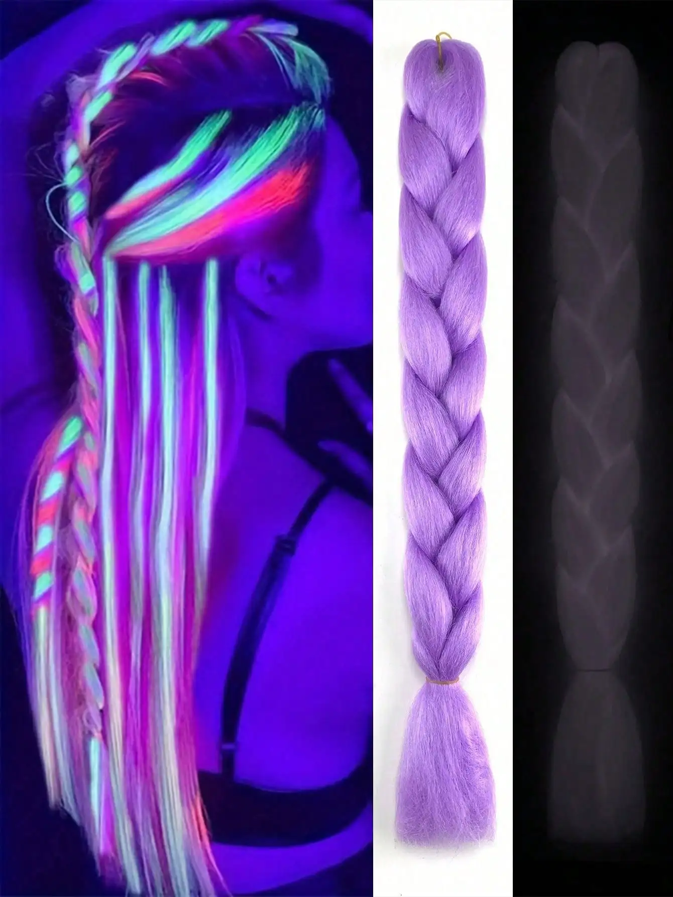 1pcs Synthetic Luminous Jumbo Braids Hair Neon Glowing Fluorescent Braiding Hair Extensions for Women and Girl Music Festival