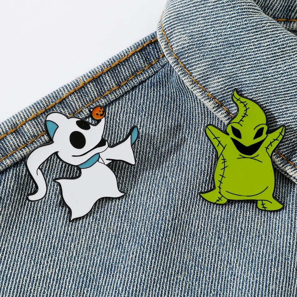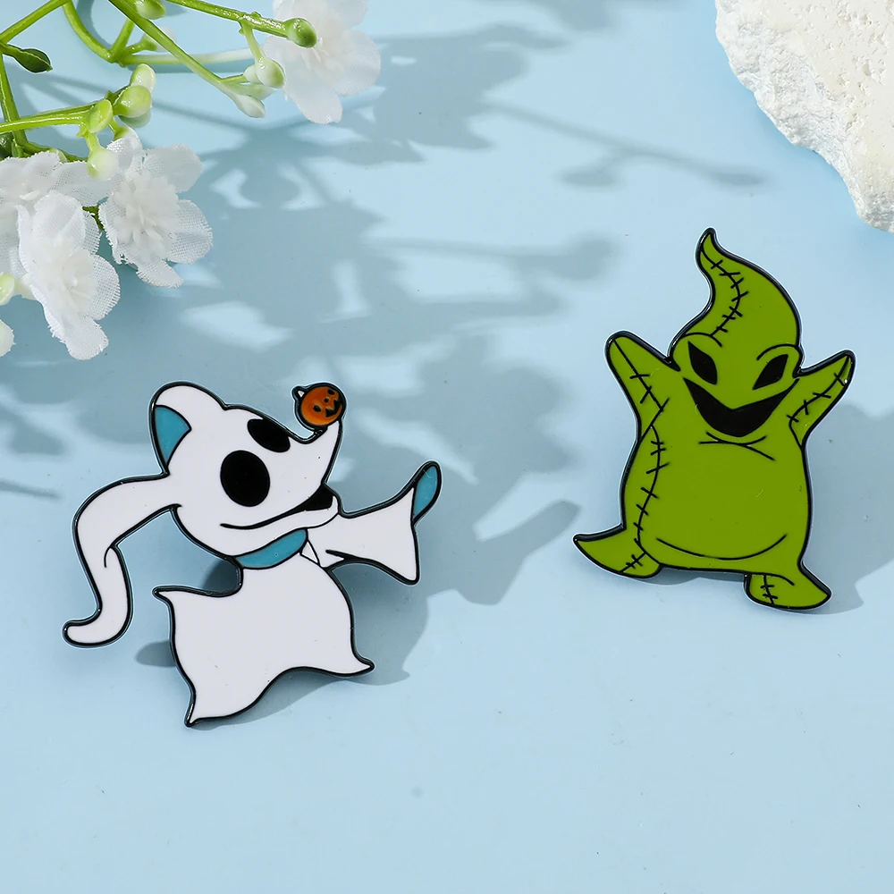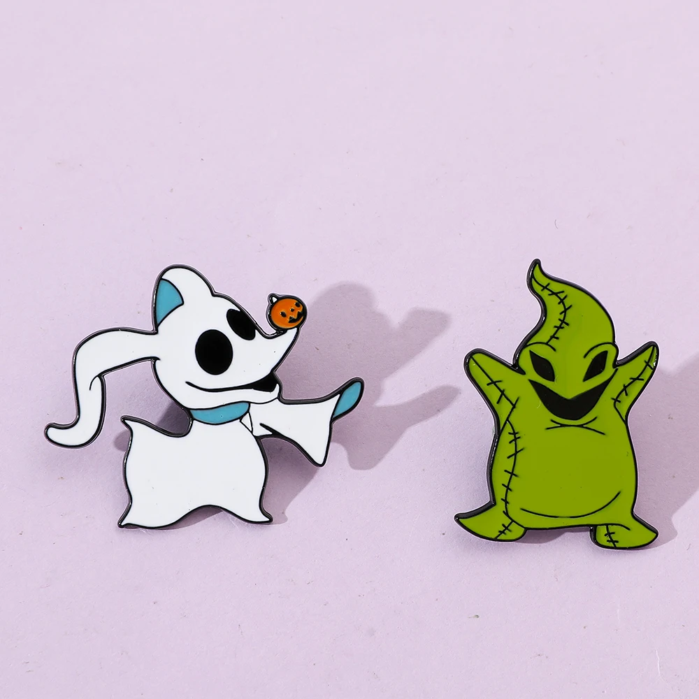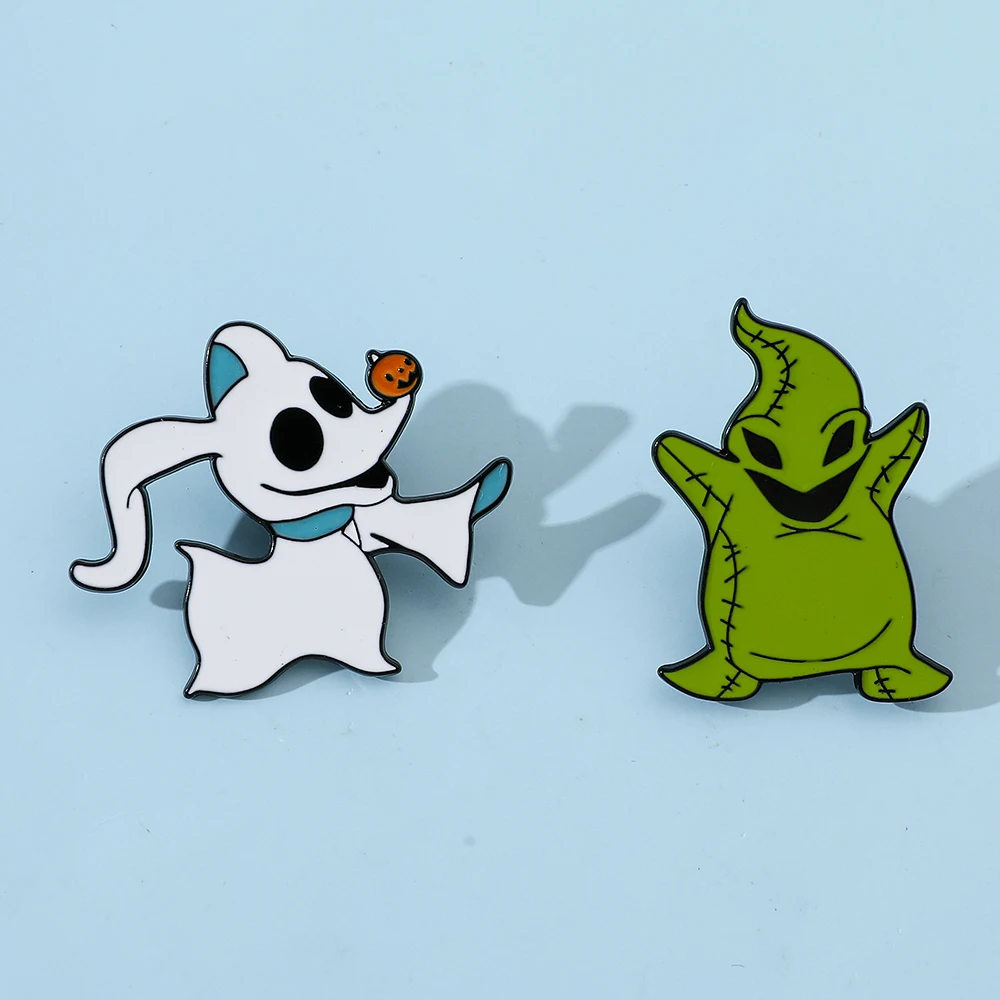 2 Pcs Cartoon The Nightmare Before Christmas Brooch Oogie Boogie Zero Enamel Metal Badge Jewelry Clothes Backpack Accessories