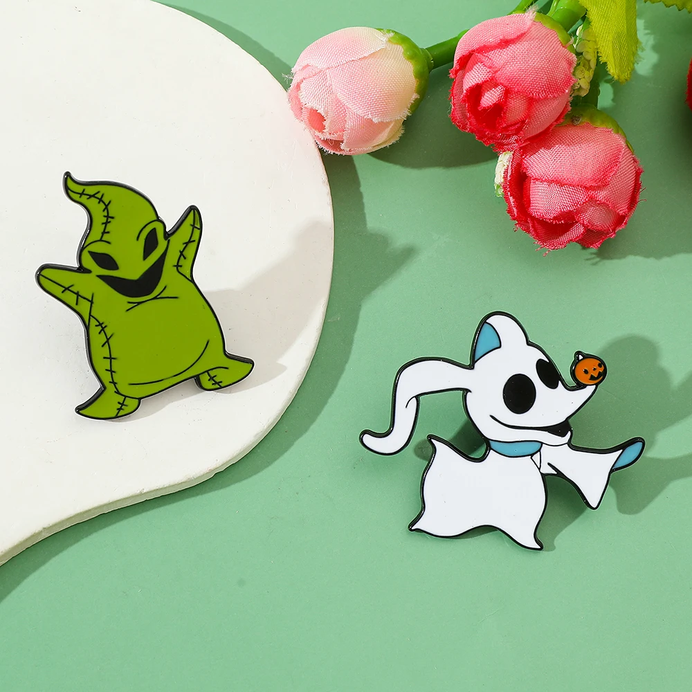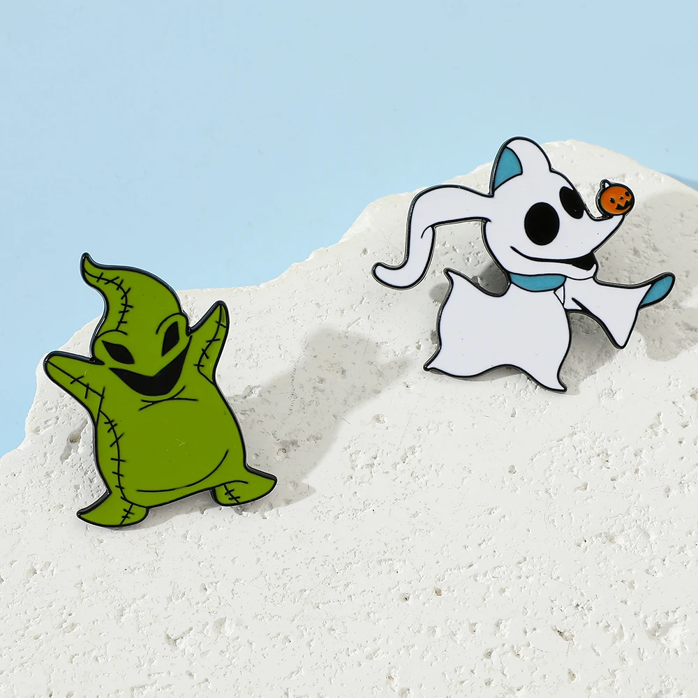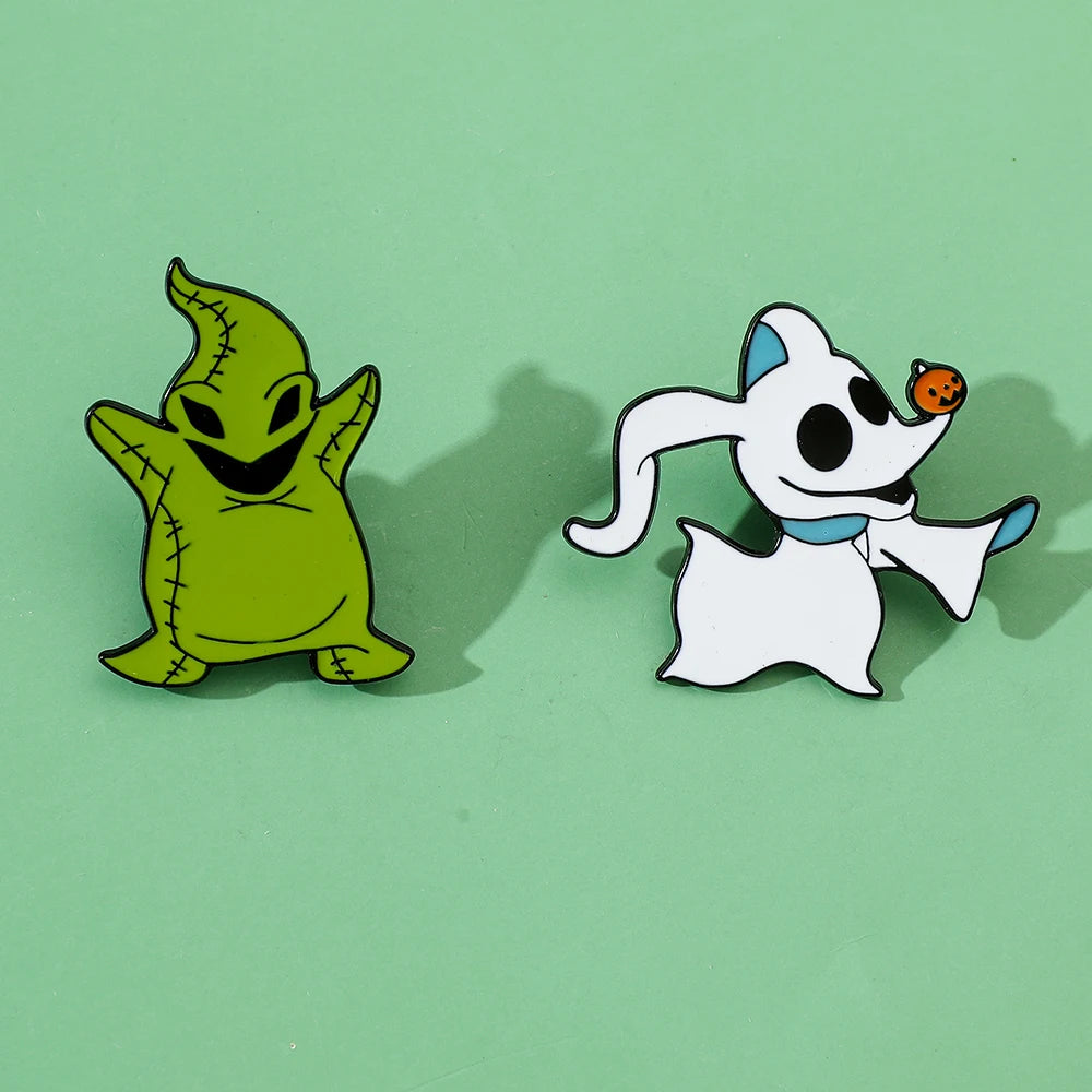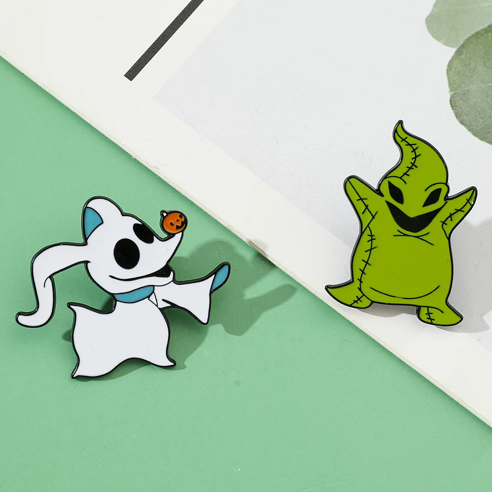 2 Pcs Cartoon The Nightmare Before Christmas Brooch Oogie Boogie Zero Enamel Metal Badge Jewelry Clothes Backpack Accessories