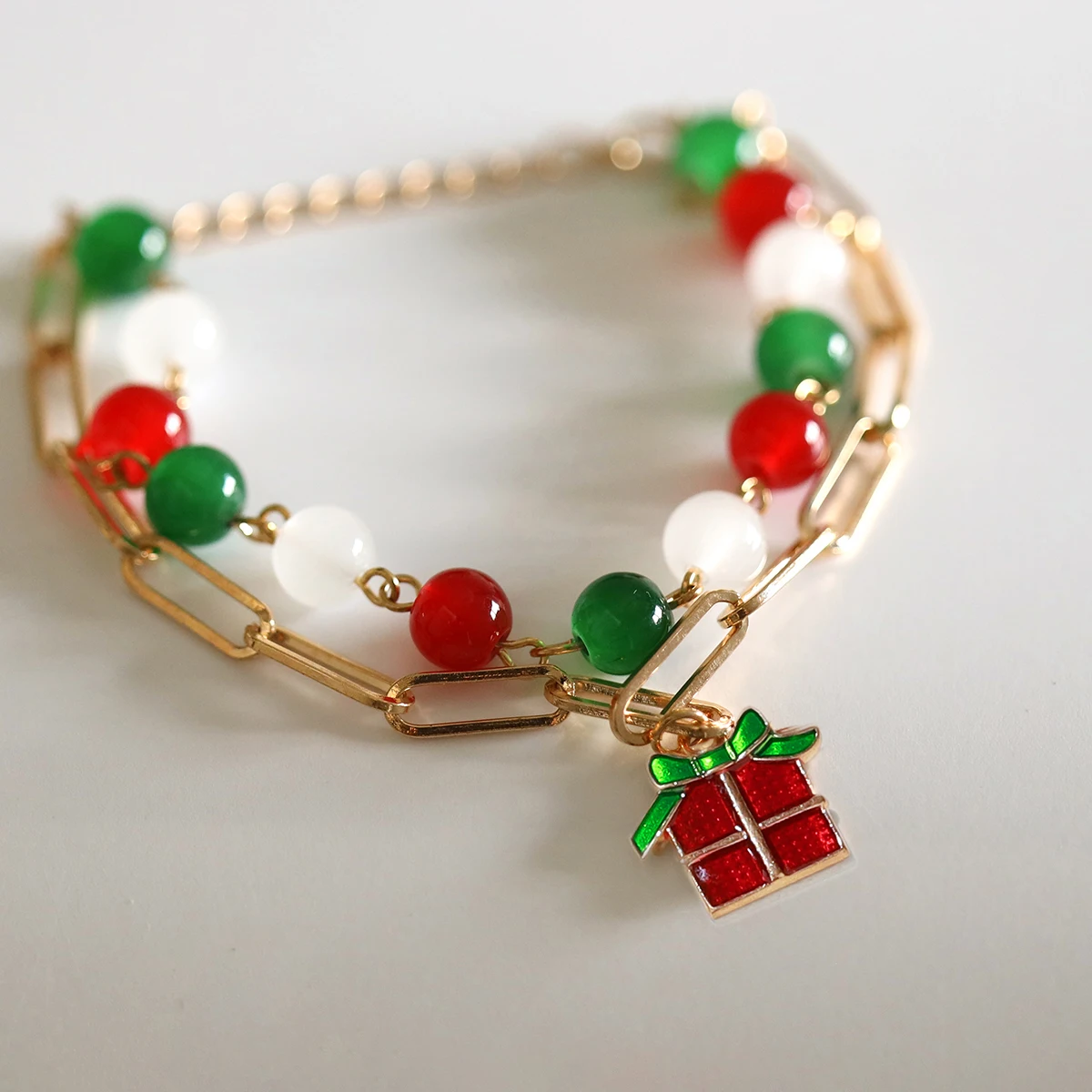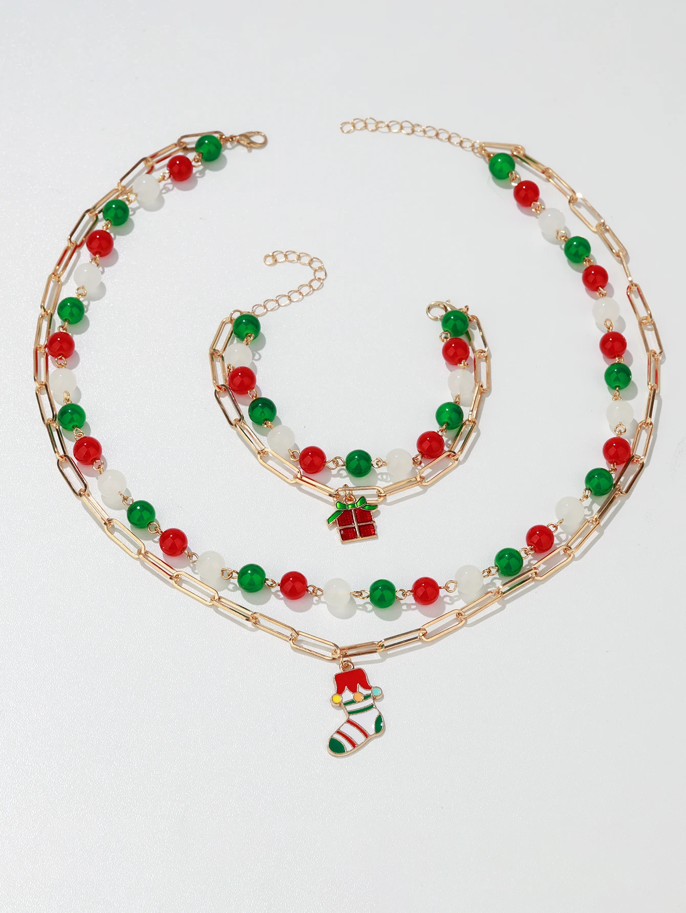 2 - Piece New Cross - Border Necklace and Bracelet Set with Sock - shaped Gifts Beaded Metal Chains(color random)