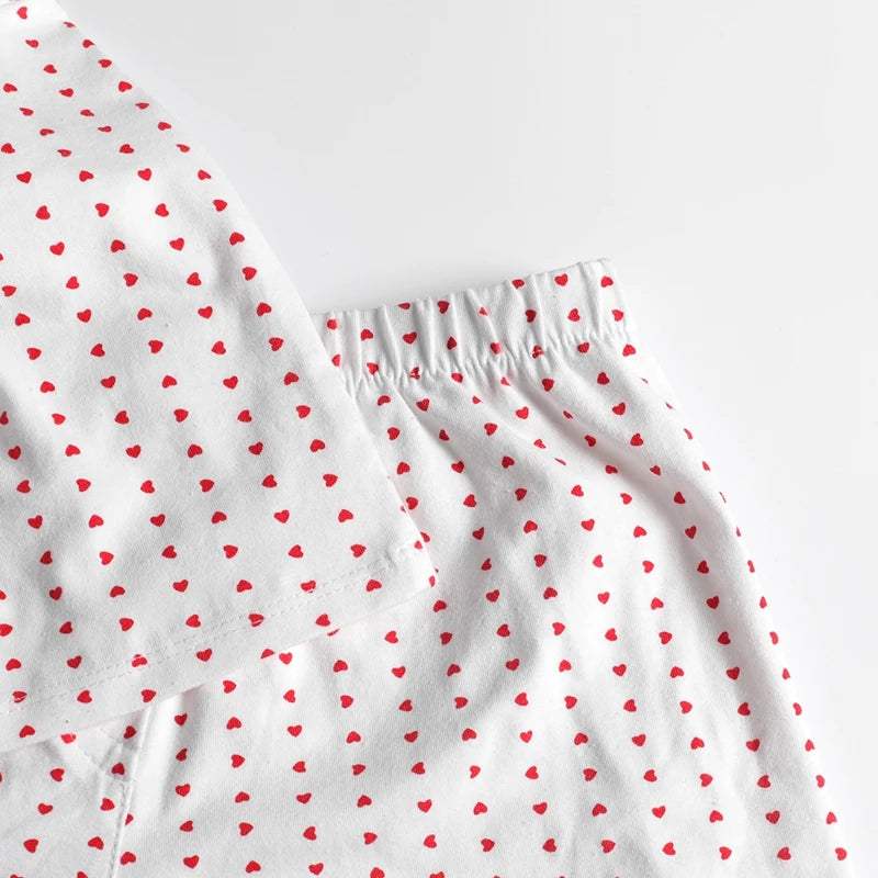 2 Piece Set Women Loungewear Cute Sweet Heart Lace Trim V Neck Cami Tops + Casual Shorts Sleeveless Crop Tops Pajamas Homewear