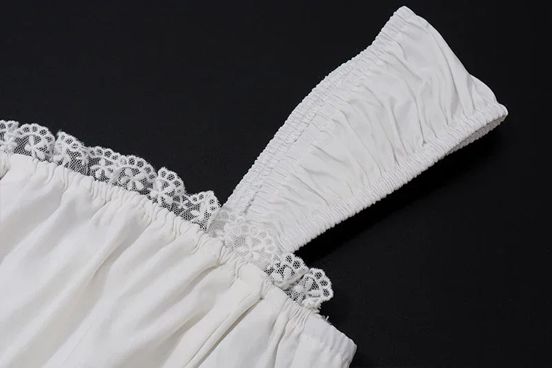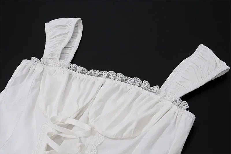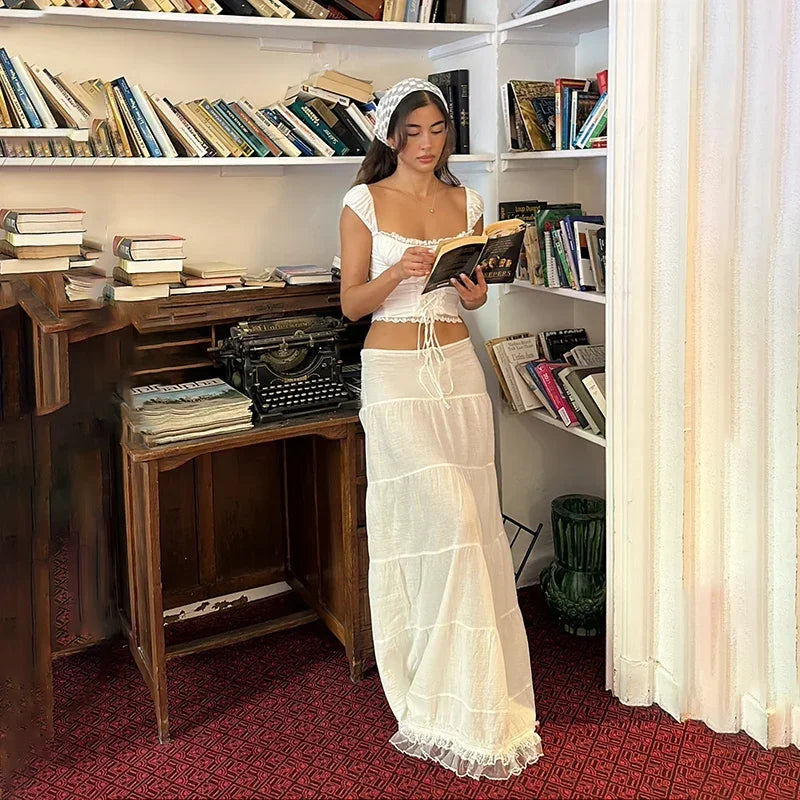2 Piece Sets Lace Patchwork Beach Holiday Matching Set Outfits Sexy Summer Women Square Neck Crop Top and Long Skirt