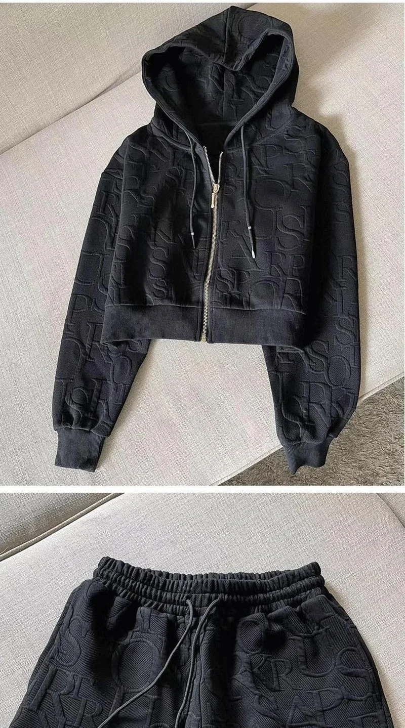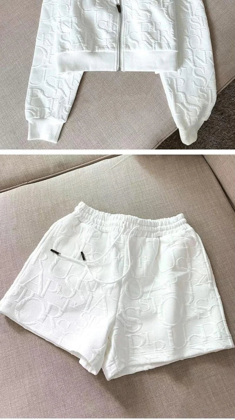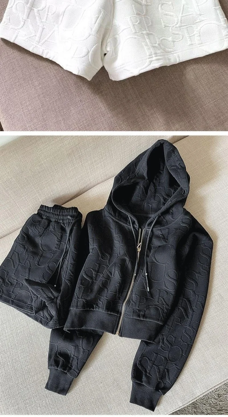 2 Piece Sets Womens Outfits Spring Fashion Skinny Hooded Short Jacket and Shorts Knitted Jacquard Designer Fall Women Clothing