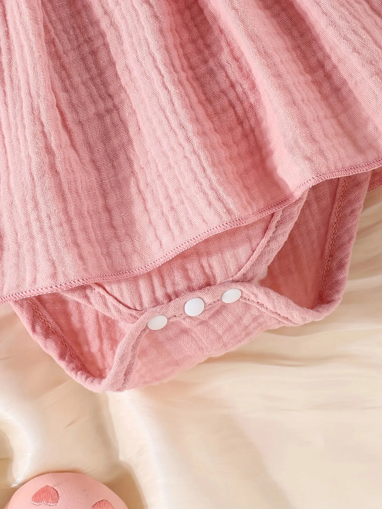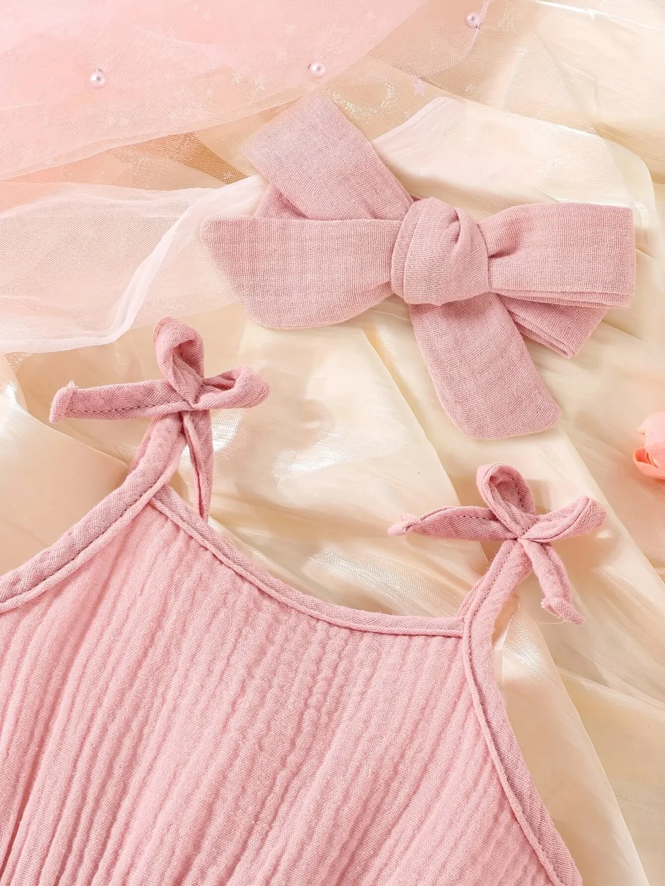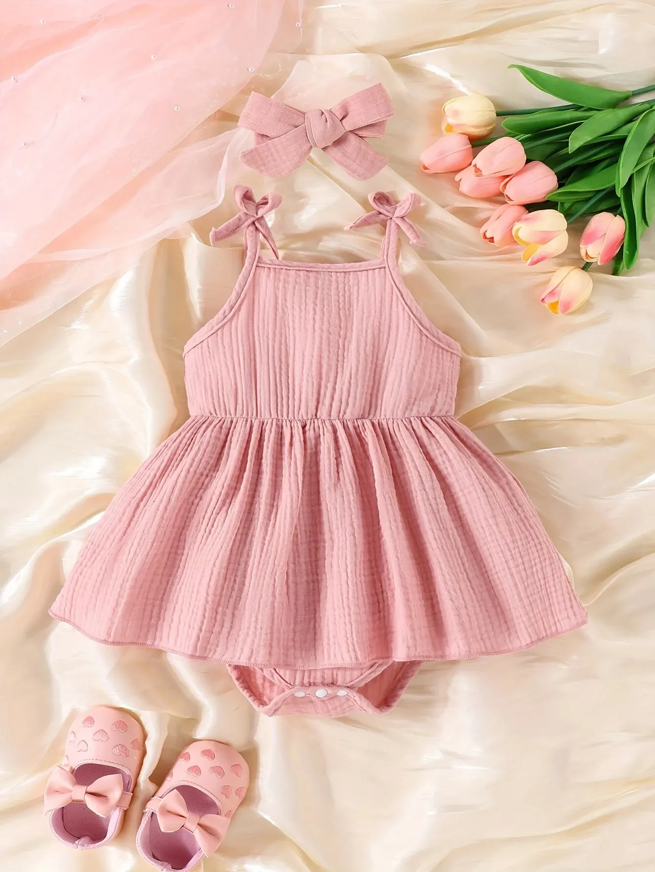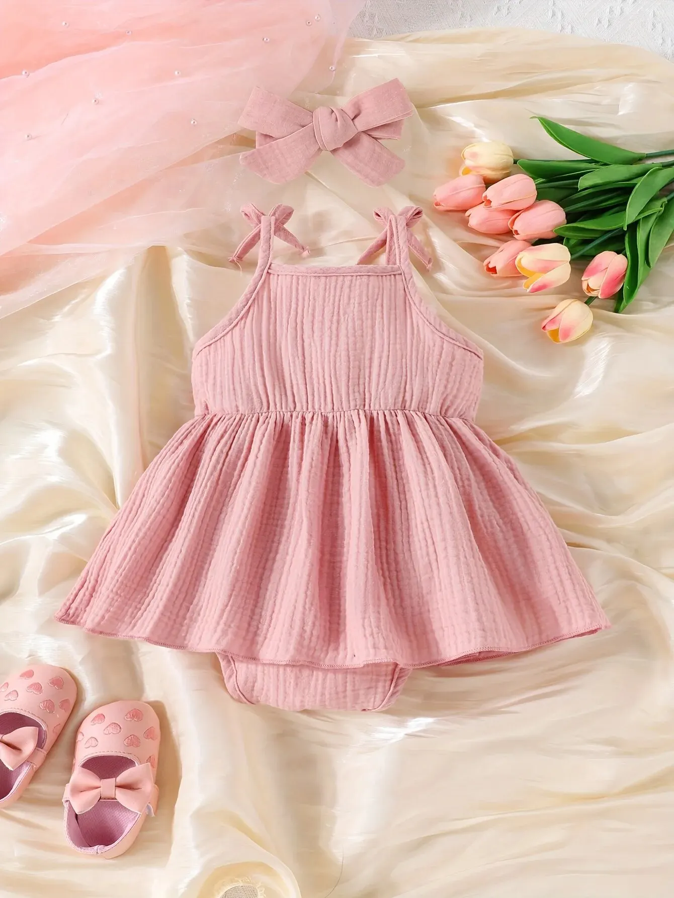 2 Sets Summer Newborn Baby Cool Breathable Pink Slip Triangle Onesie + Headband Cute Comfortable Coft Cotton Dress