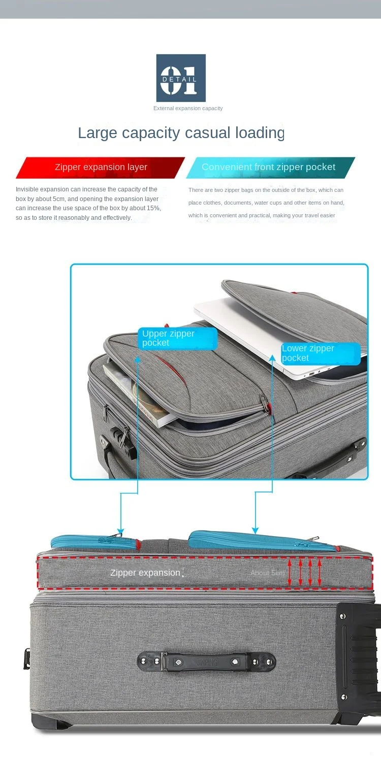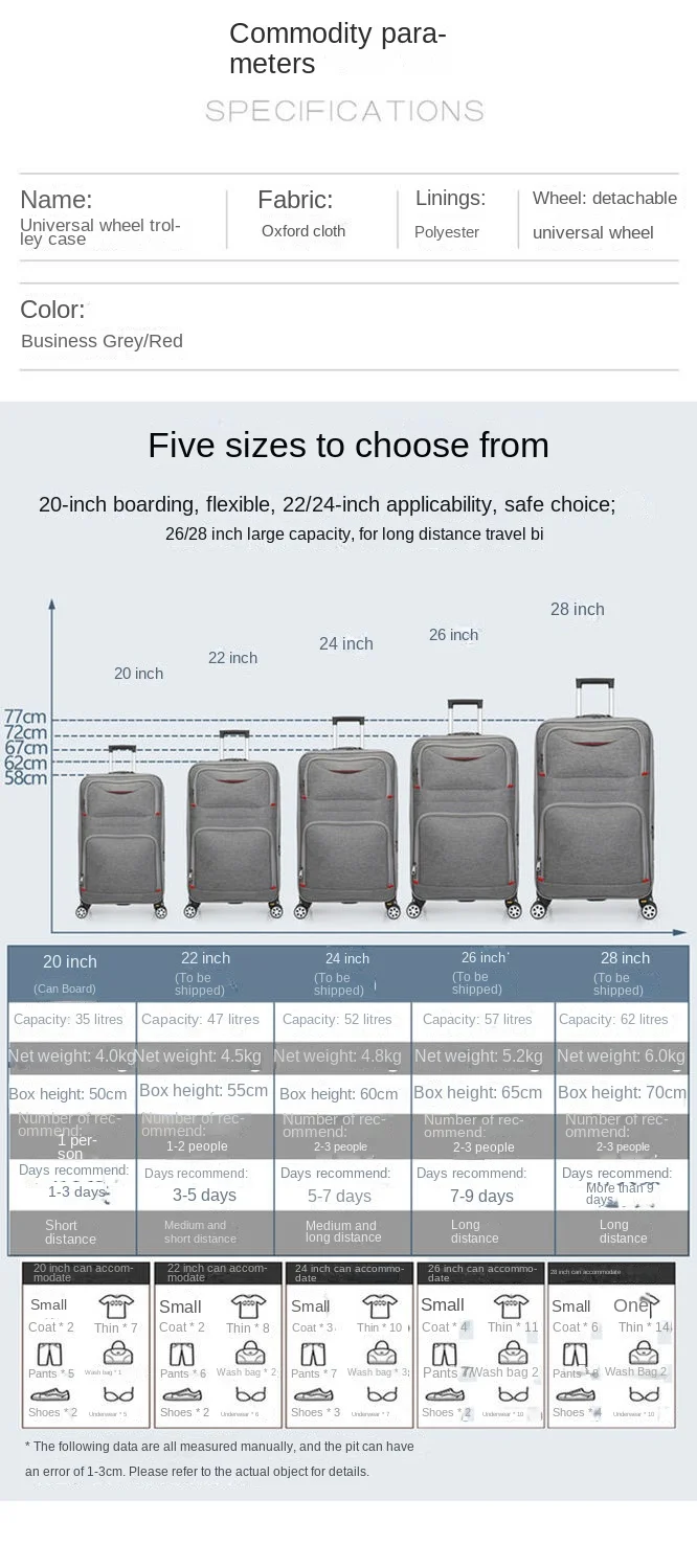 20-28 inch Large Capacity Suitcase Waterproof Oxford Cloth Password Box Removable Universal Wheel Expansion Travel Suitcaes