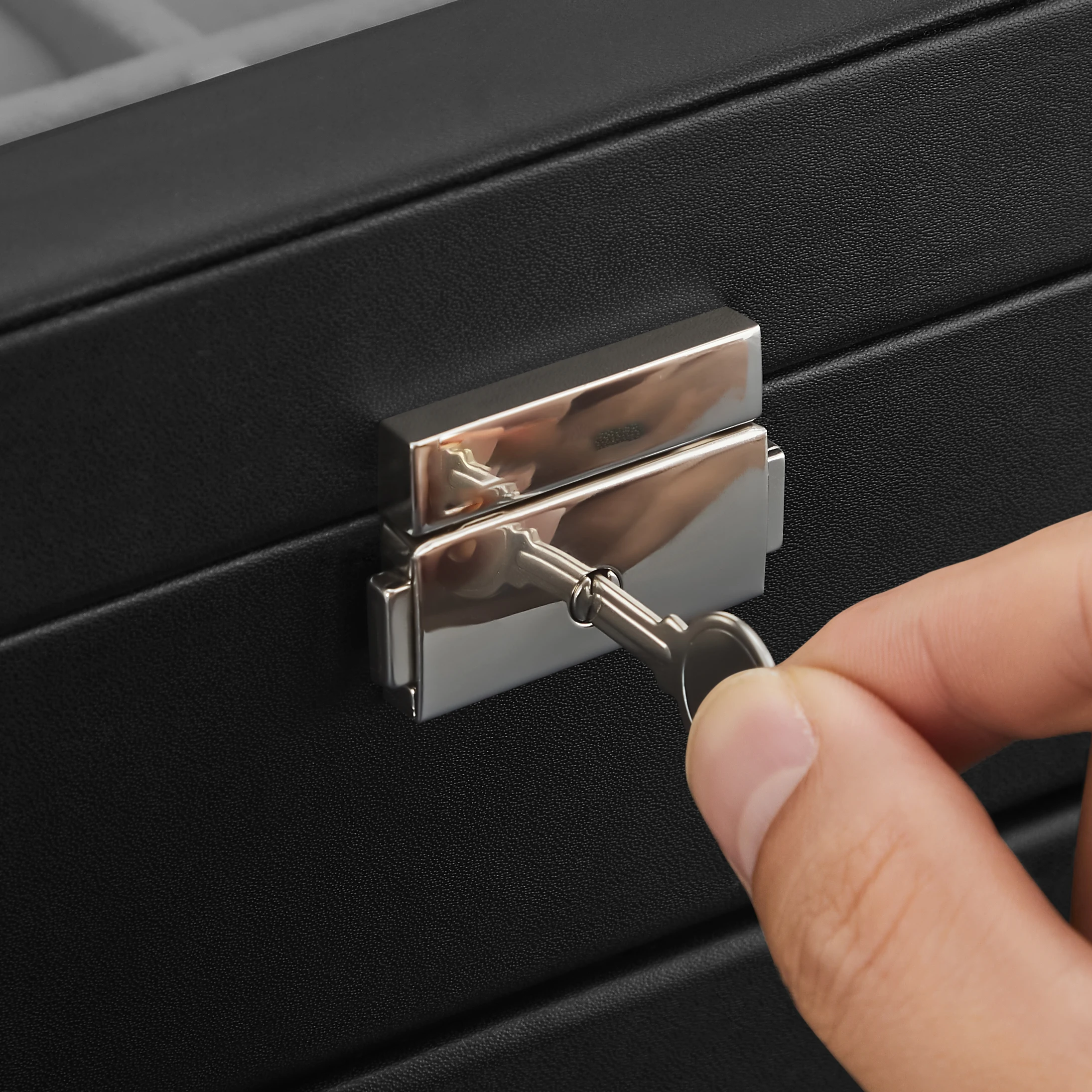 [Fine Workmanship] This case is made with quality synthetic leather and soft velvet lining, also features a quality lock (1 keys included). This well-crafted watch box organizer is sturdy and durable, keeping your valuables safe and secure