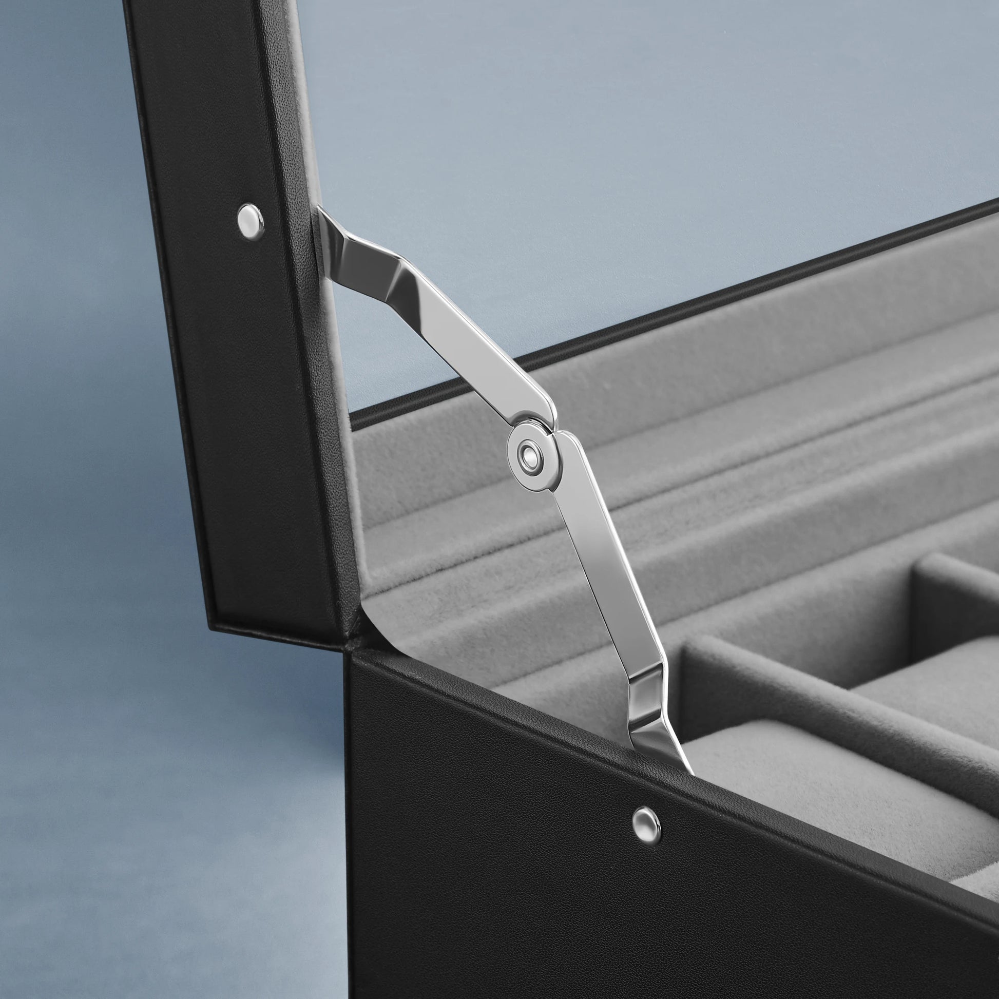 [Large Glass Lid] This watch storage box comes with a large, clear glass top, so you can show off your watch collection, keep them away from dust, and find your fave instantly to save time on hectic mornings