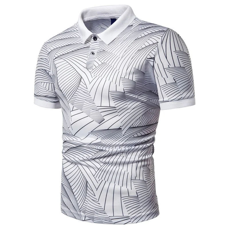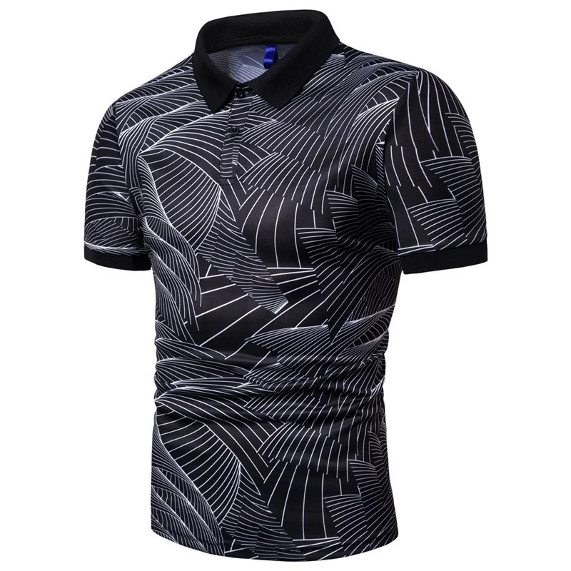 2023 Casual European And American Men's Fashion Wave Print Short Sleeve T-shirt Polo Top