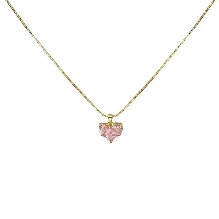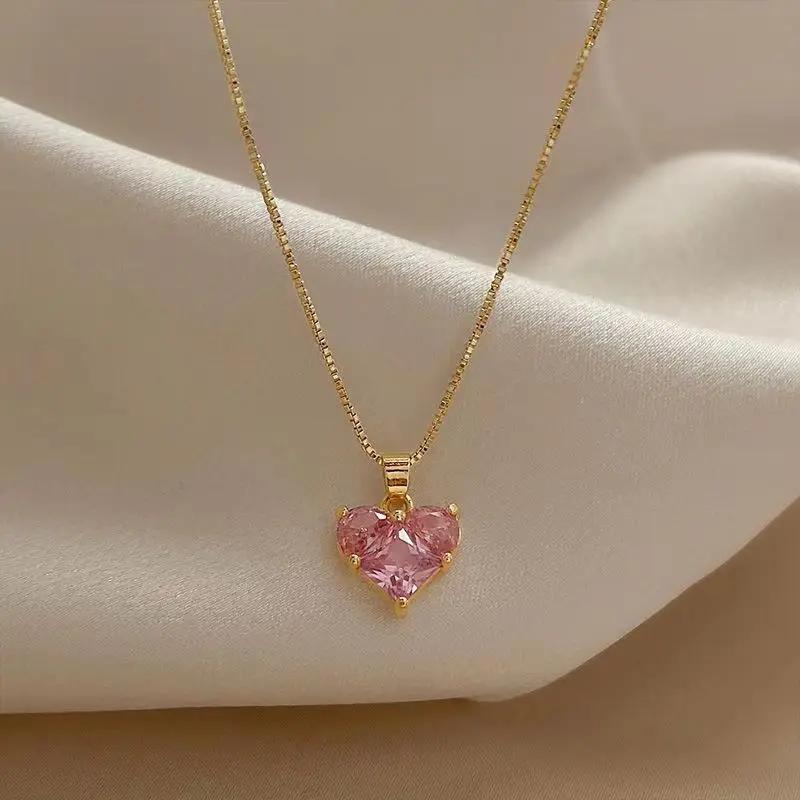 2023 New Fashion Trend Unique Design Elegant Delicate Pink Love Zircon Clavicle Necklace Women Jewelry Party Gift Wholesale