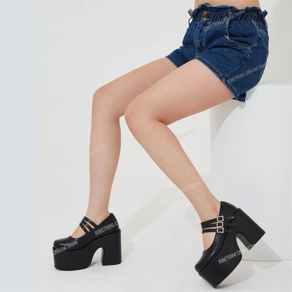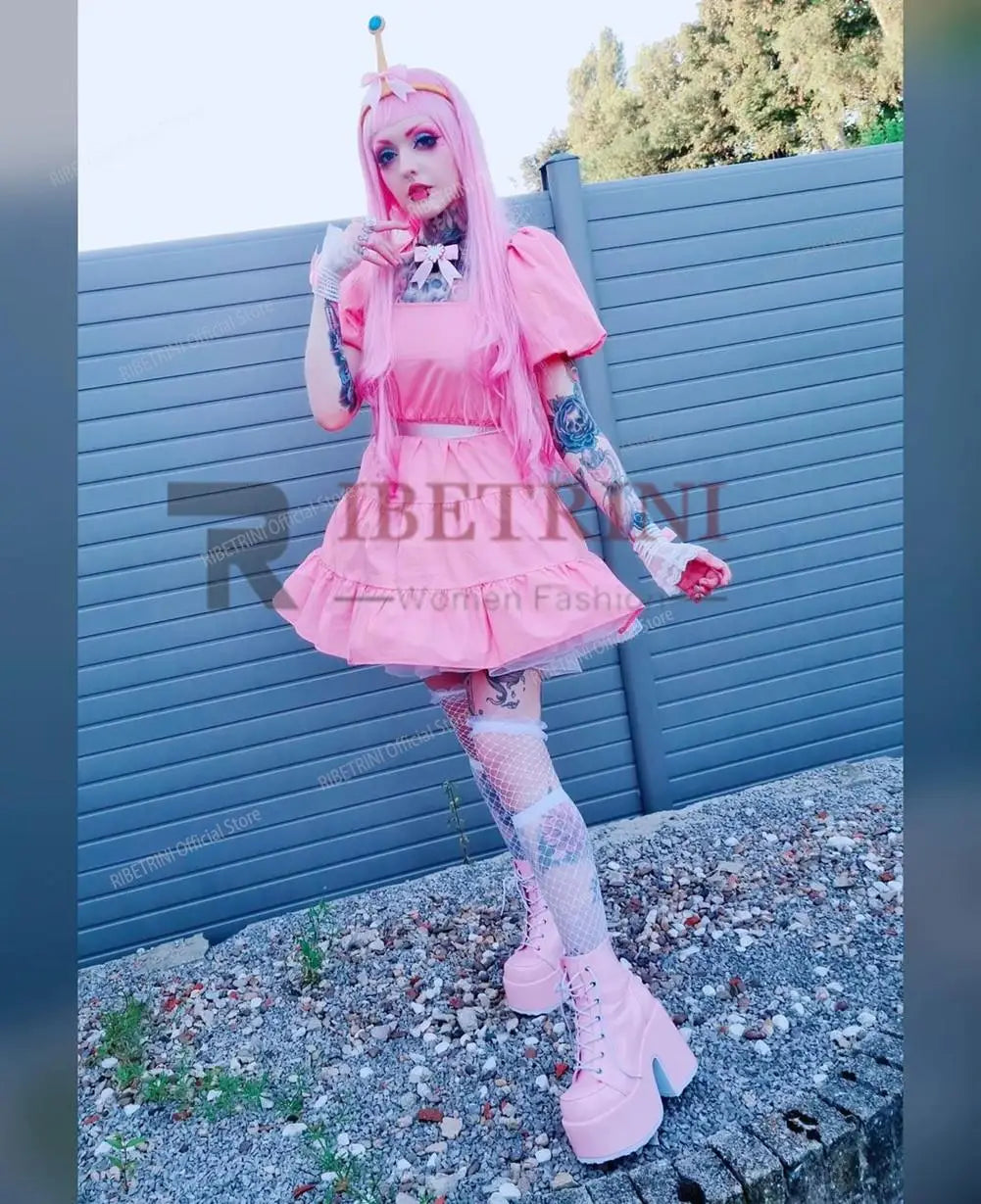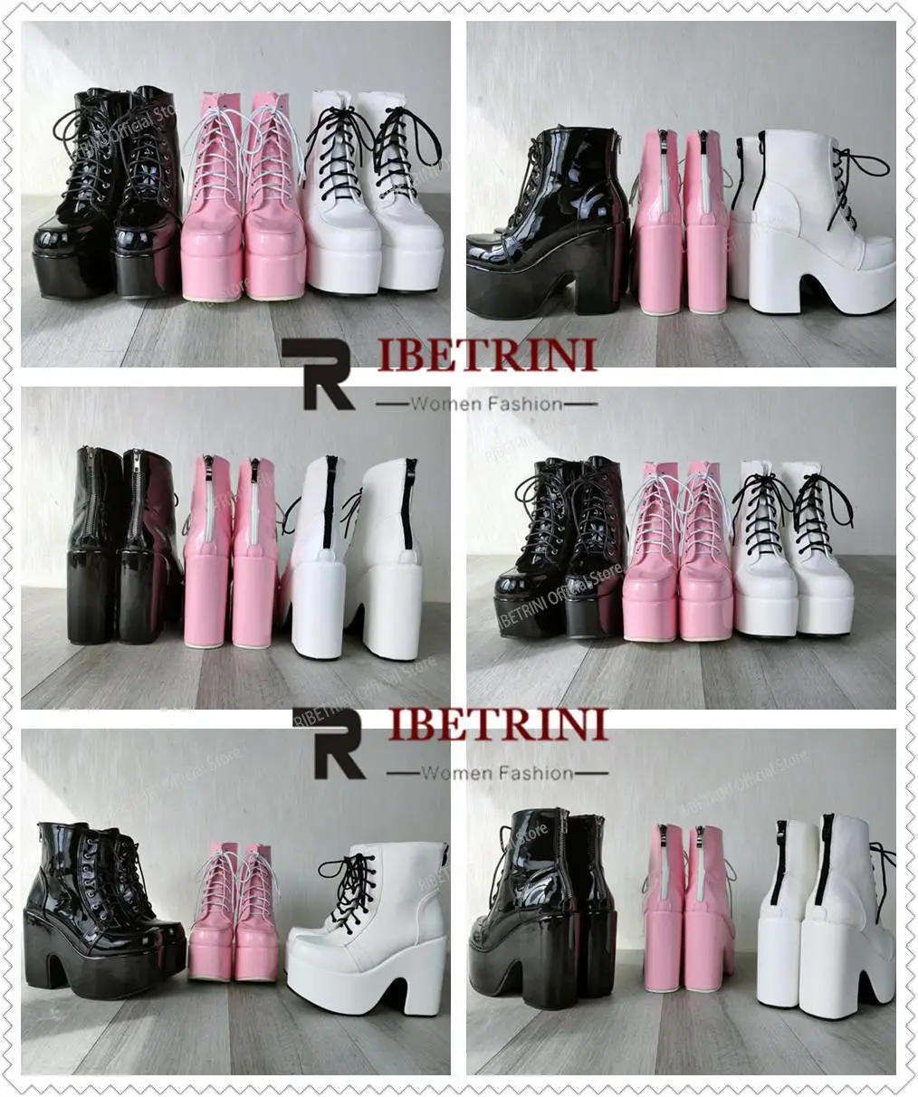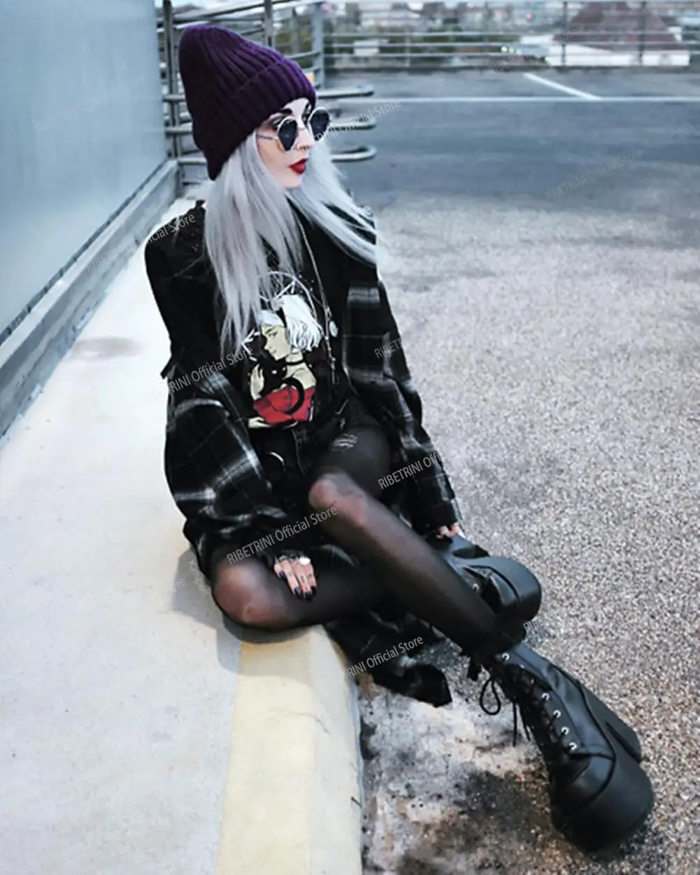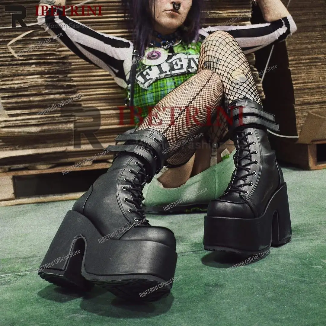 ~~2021 Platform High Heel Cool Punk Fashion Women's High Quality Girls Goth Shoes Black Big Size 43 Cross-tied Casual Luxury Boots~~