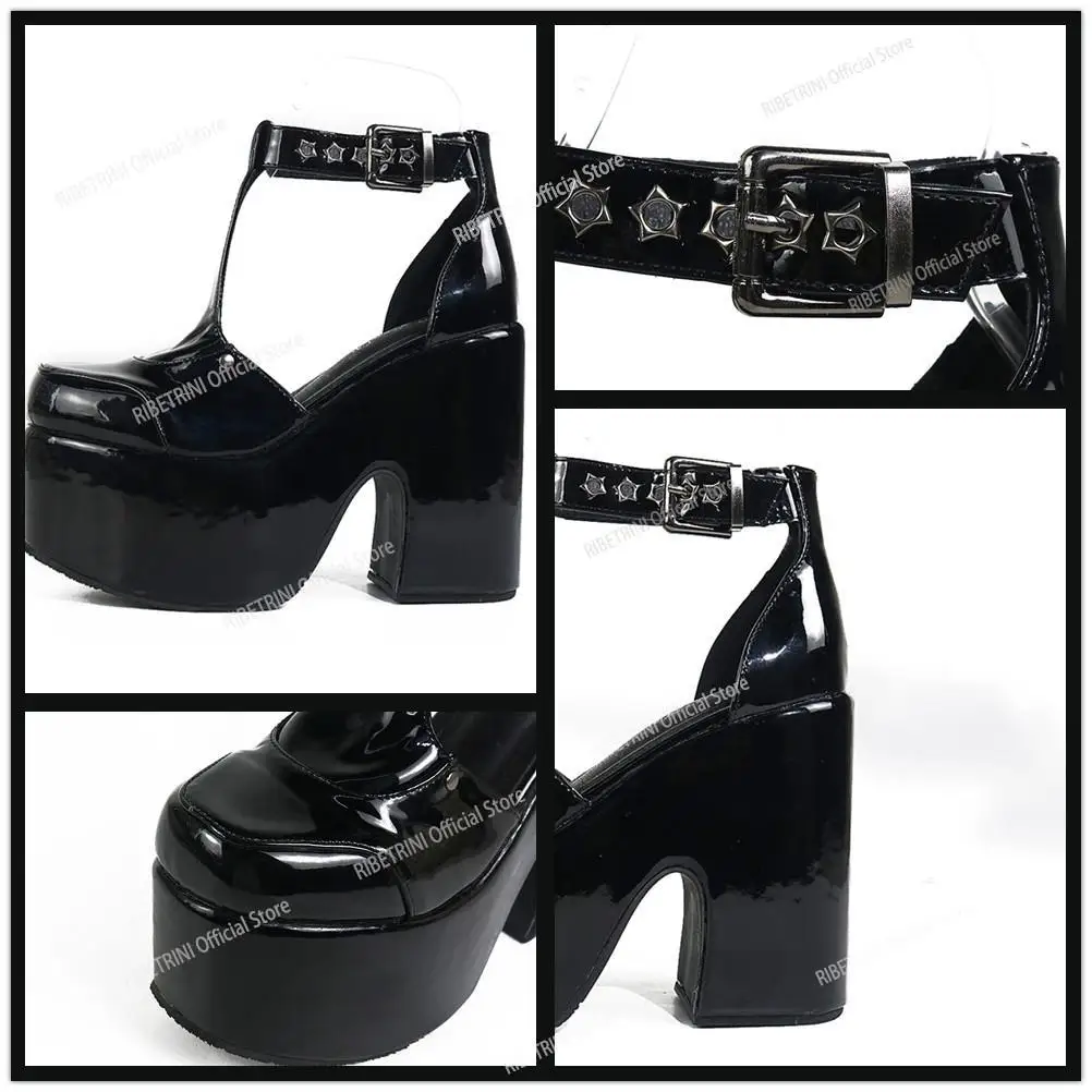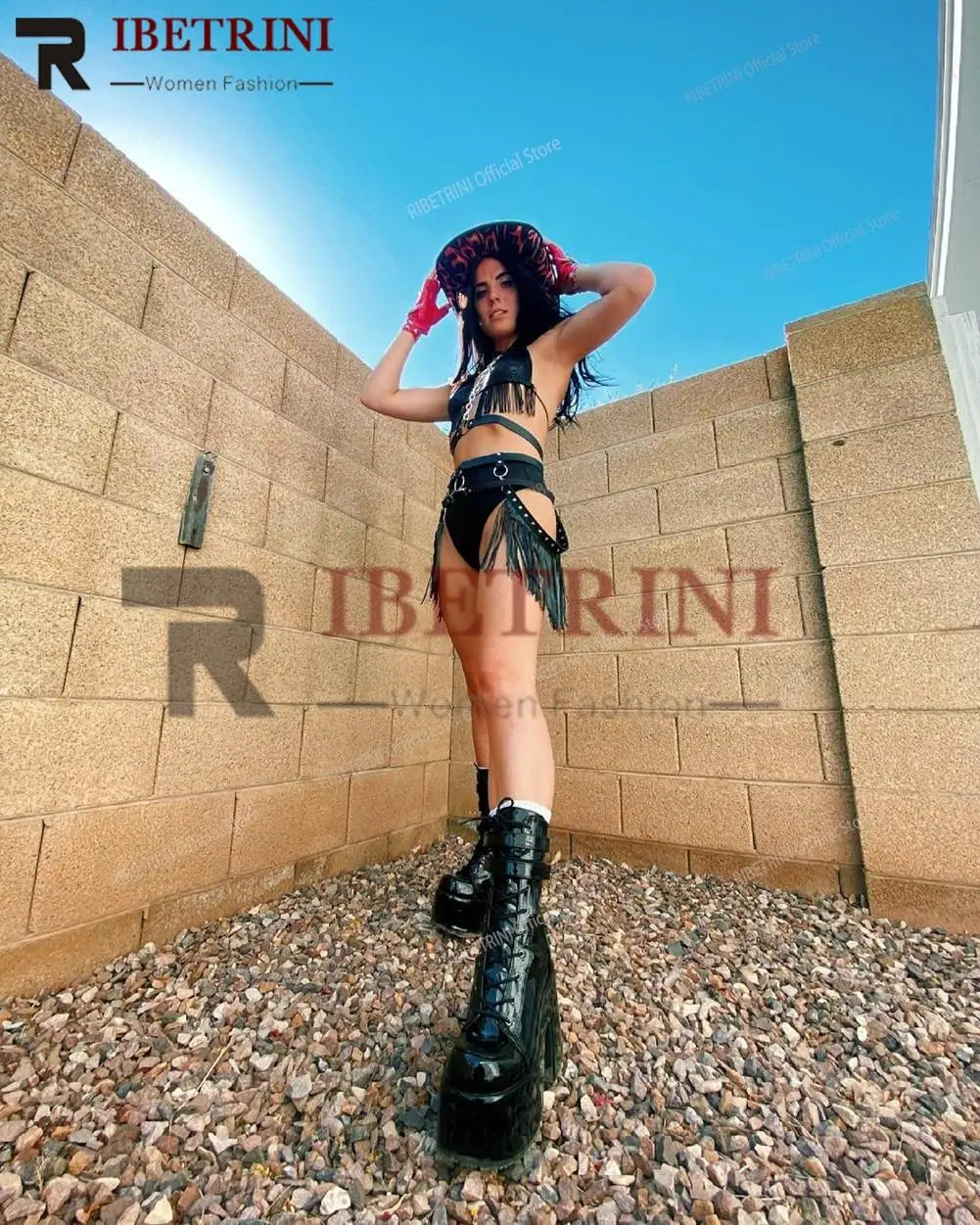 2023 Platform High Heel Cool Punk Fashion Women's High Quality Girls Goth Shoes Black Big Size 43 Cross-tied Casual Luxury Boots