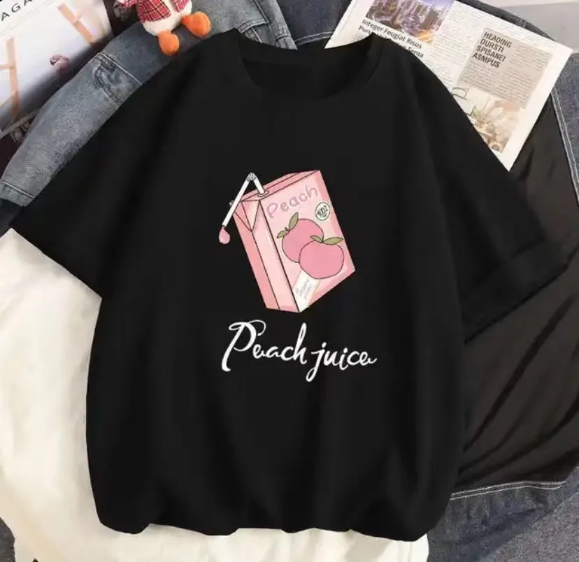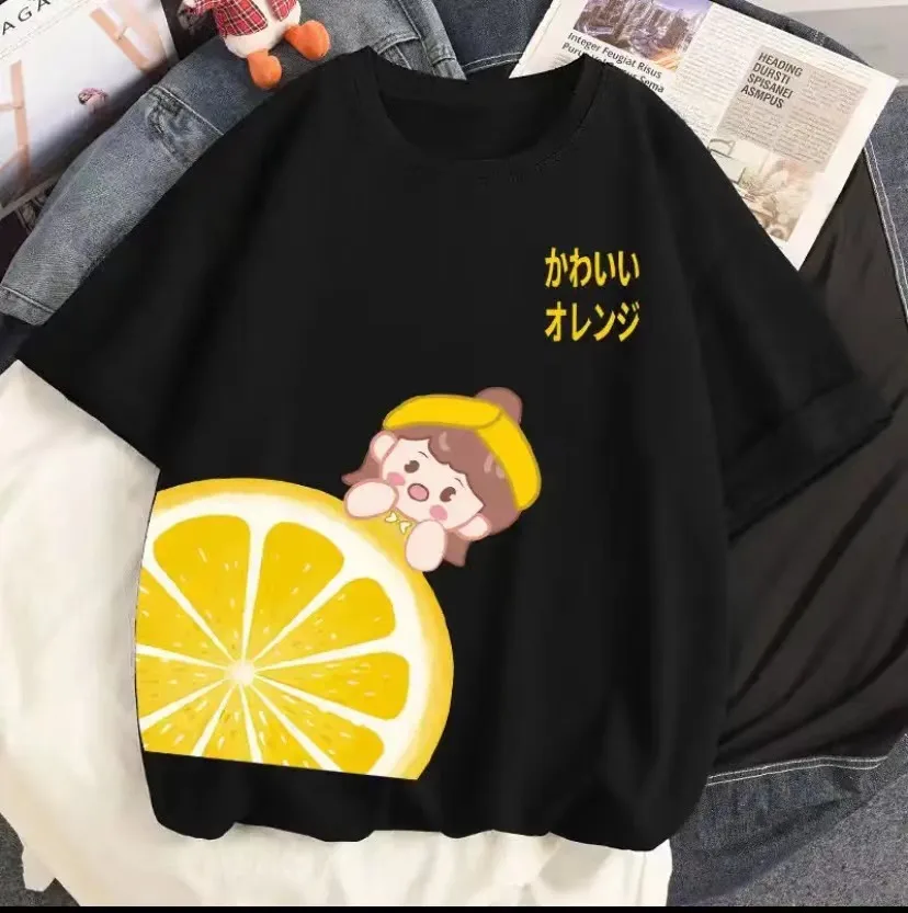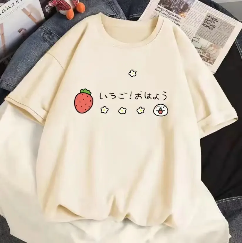 2023 Strawberry Girl Short Sleeved T Shirt Summer Women 100% Cotton White Loose T-shirts Harajuku Kawaii Female Tops Y2k Clothes
