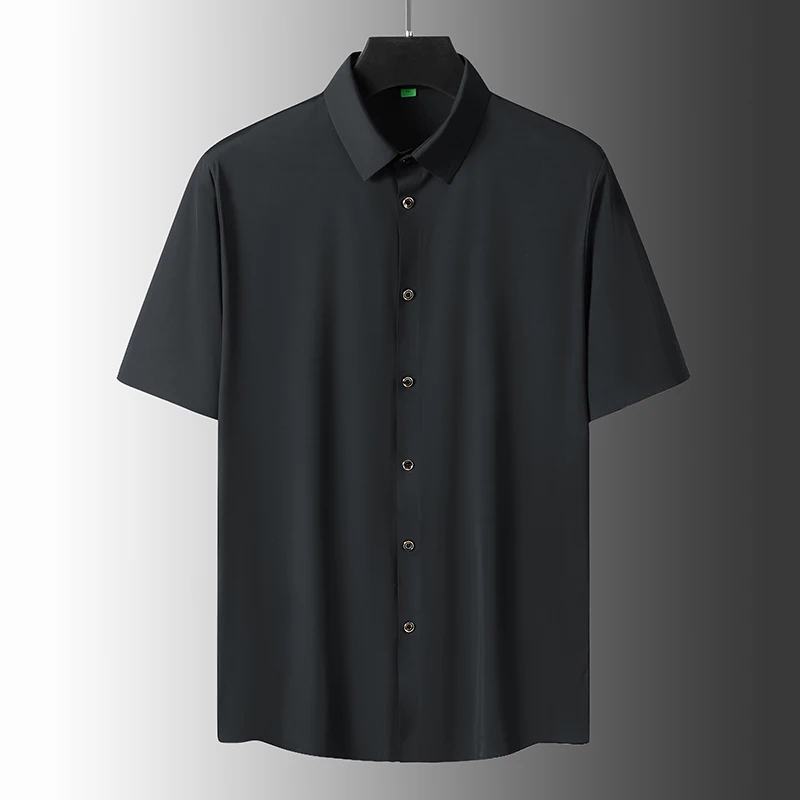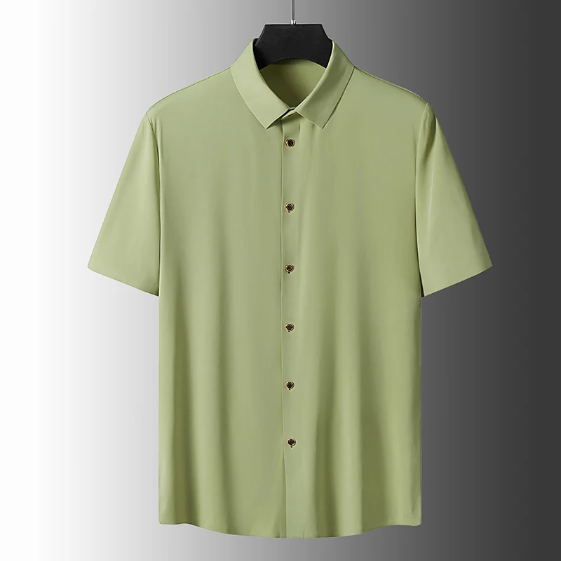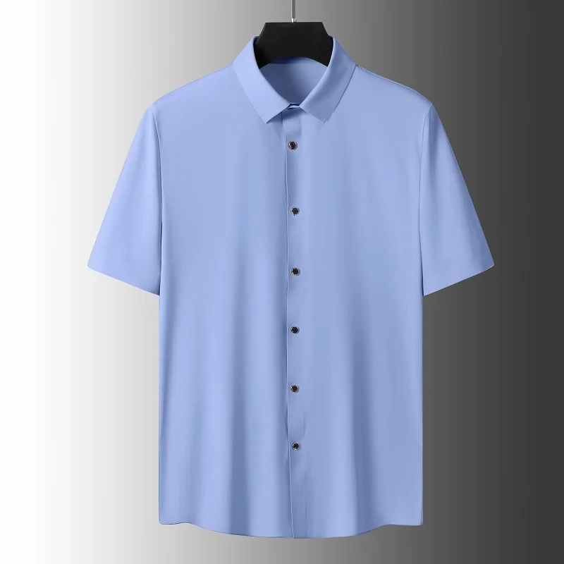 2023 Summer Men Solid Color Short Sleeve Shirt Men Loose Single-Breasted Casual Blue Shirts Male Quick Dry Silk Shirt L-6Xl