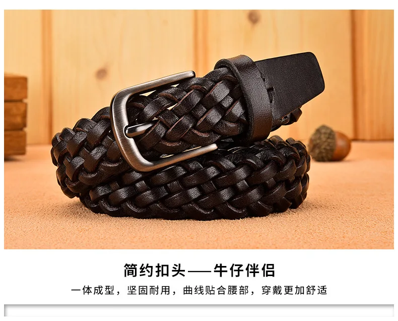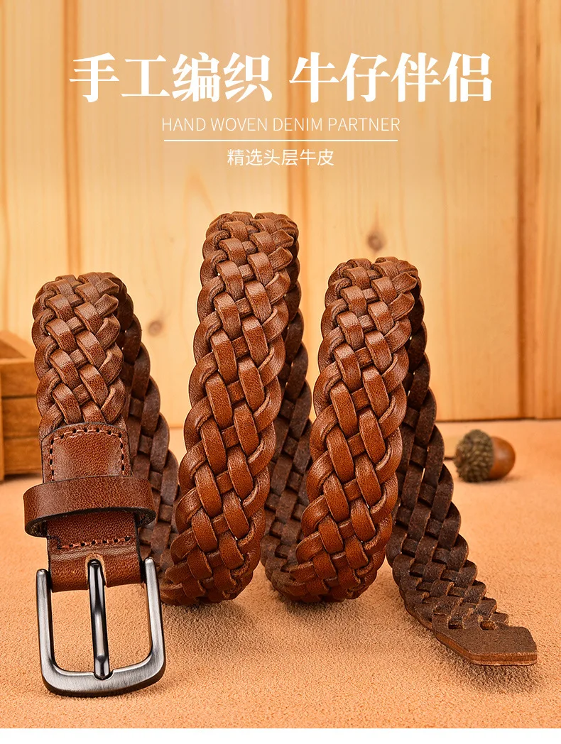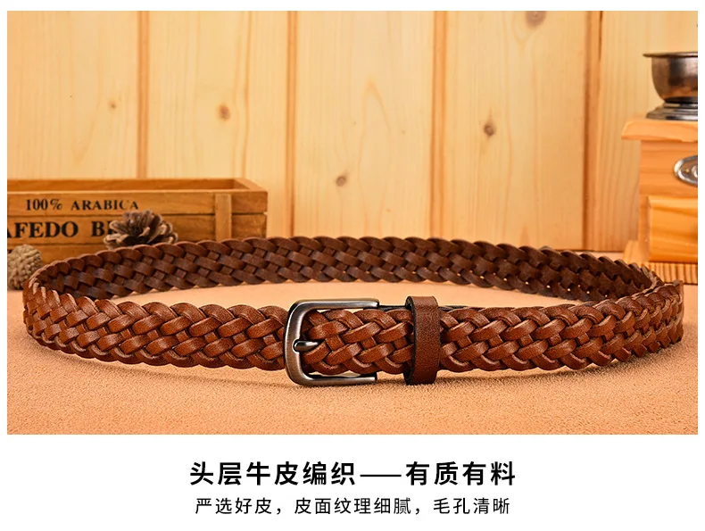 2023 Women Casual Luxury New Style Width 2.5cm Woven Belt Needle Buckle Real Leather Head Layer Cowhide Handmade Decorative